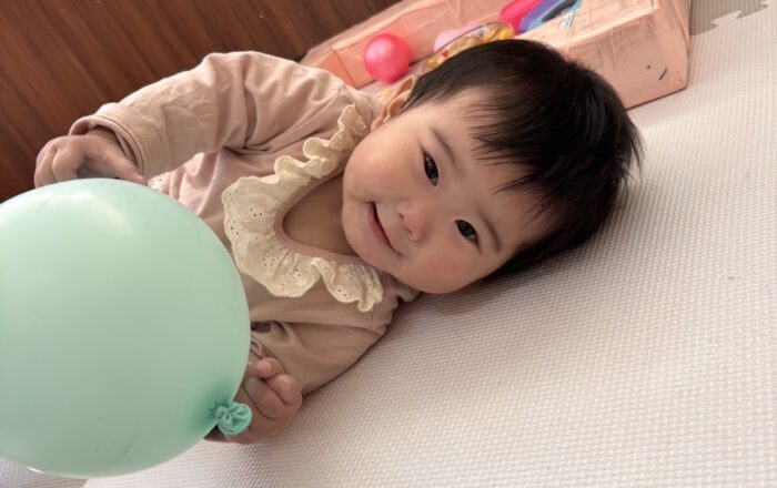 今日の様子です♪0歳児さんはアスレチックマットで遊びました✨登ったり、腹ばいになってペチペチとマットを元気に叩いたりしました😊にっこり😊楽しいね💕私は仰向けから寝返りをしてマットに触りました✨モチモチしていたね😊1、3歳児さんは広いフロアでボール遊びをしました🌈カラフルなボールをたくさん集めたり、輪っかをめがけ