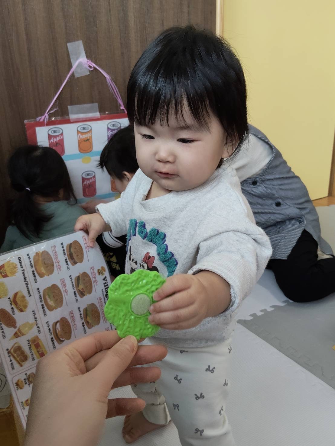 保育者に「どうぞ😊」と