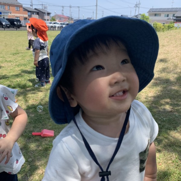飛んでいくしゃぼん玉を、一生懸命に追いかける子どもたち🎵
