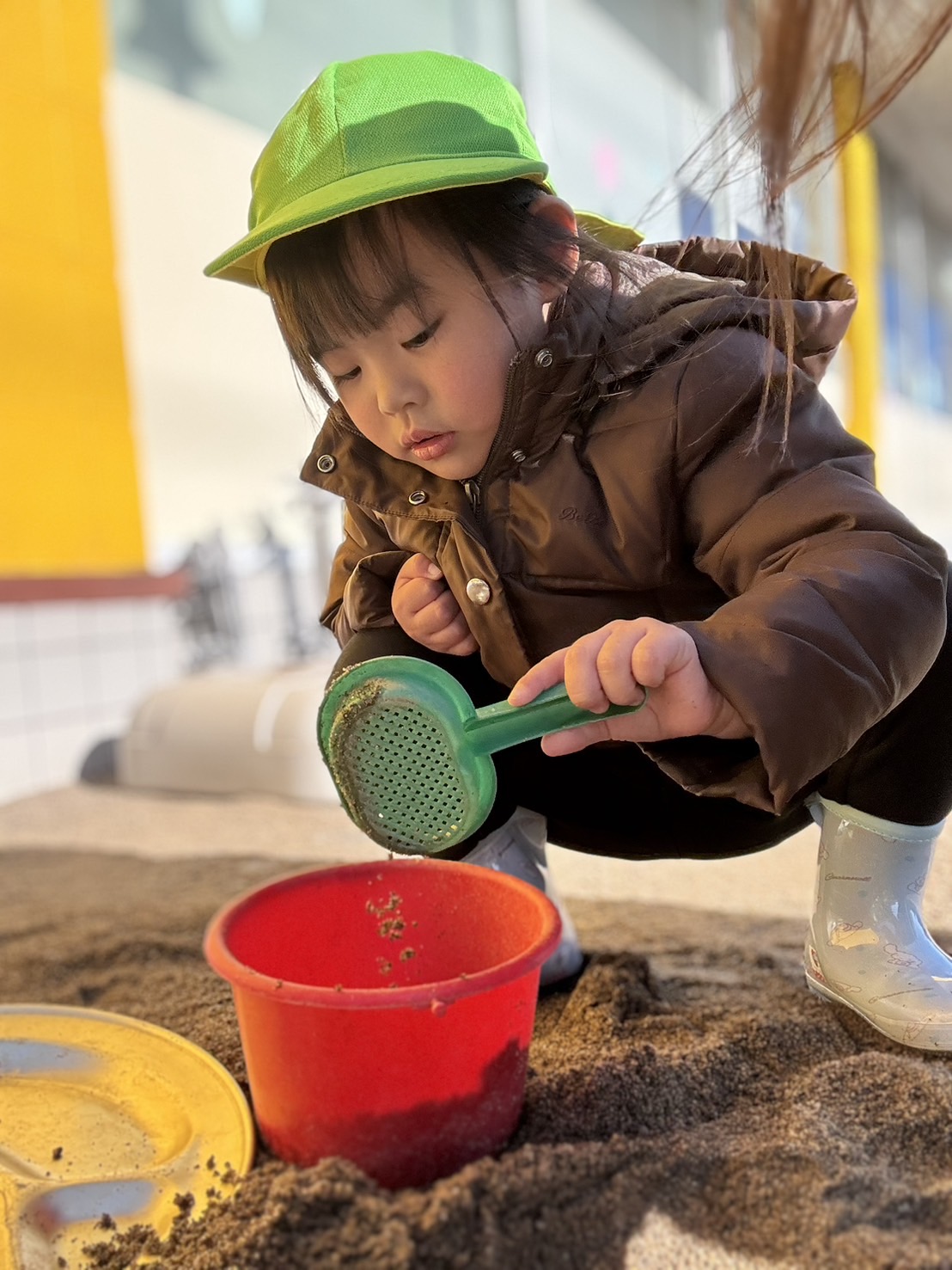 私も、スコップで砂を掘り「サクッサクッ」という音や感触を楽しみました✨