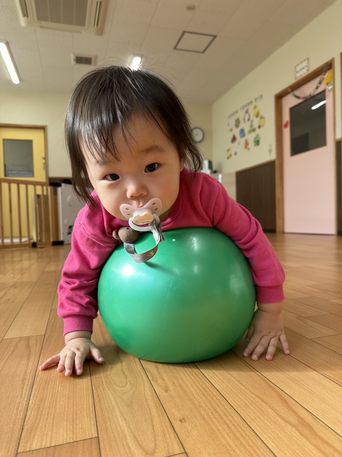 こちらでは、ボールの上に乗ってバランス⚽️