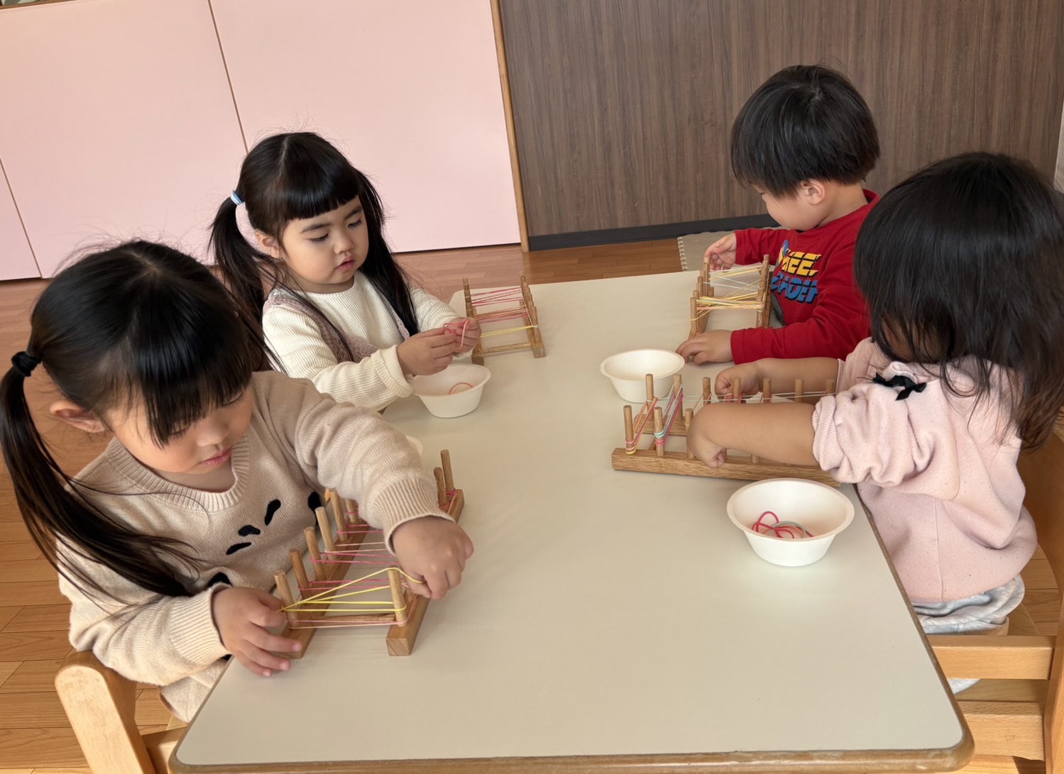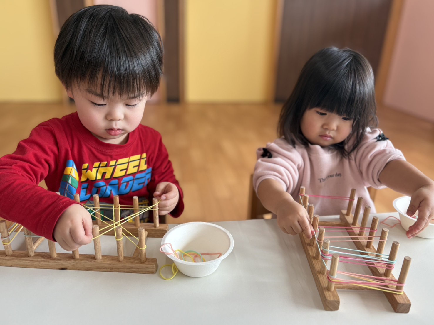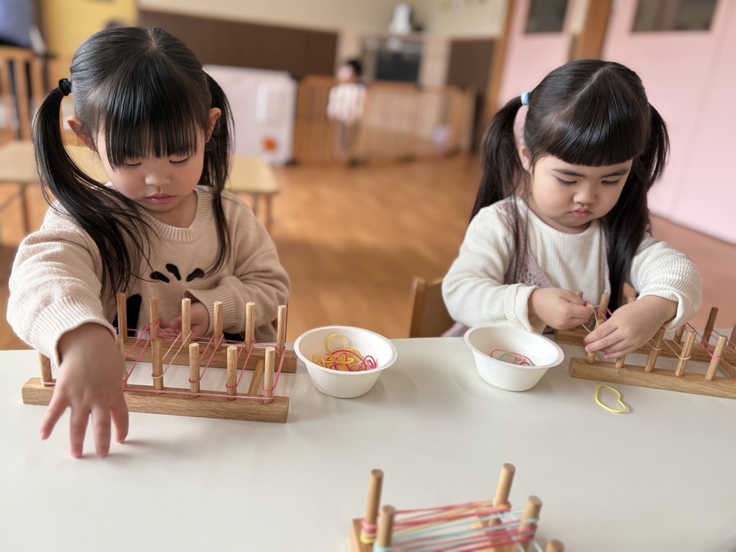 1、2、3歳児さんは、輪ゴムを使って