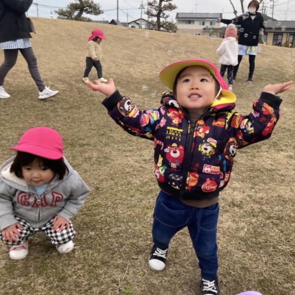 風が優しくふき、シャボン玉とたくさんタッチができたのお友だち🎶