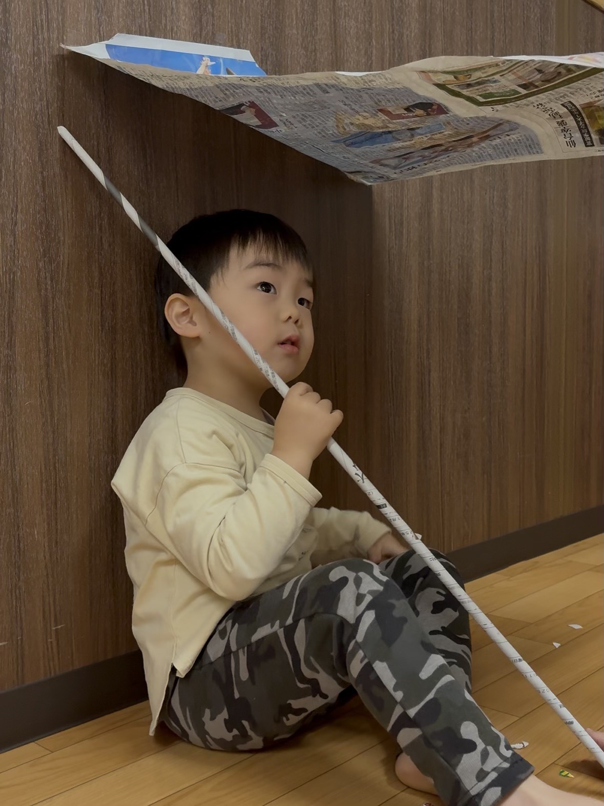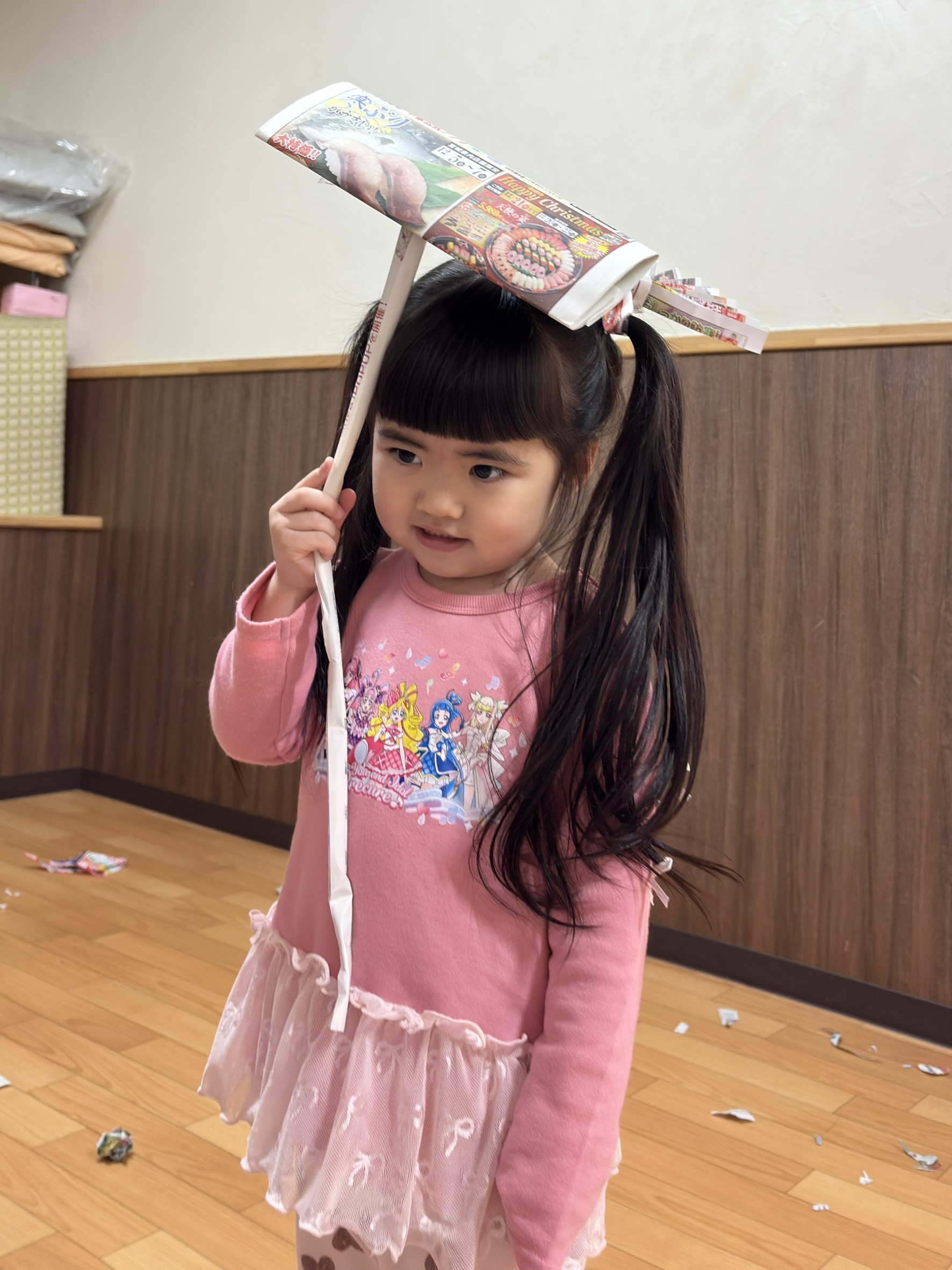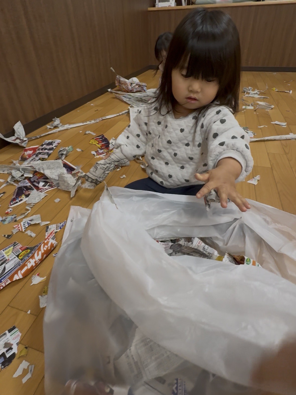 1・2・3歳児さんは、新聞紙で遊びました🗞️