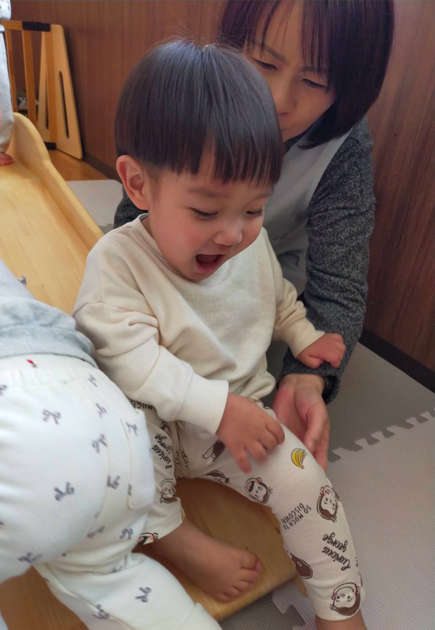 0歳児さんは、滑り台で遊びました✨