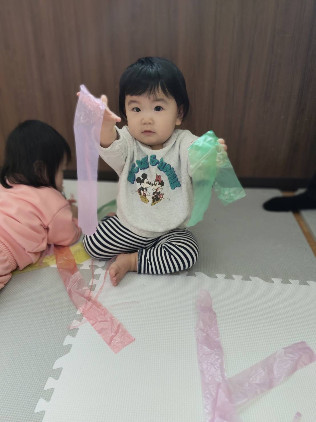 0歳児さんは、スズランテープで