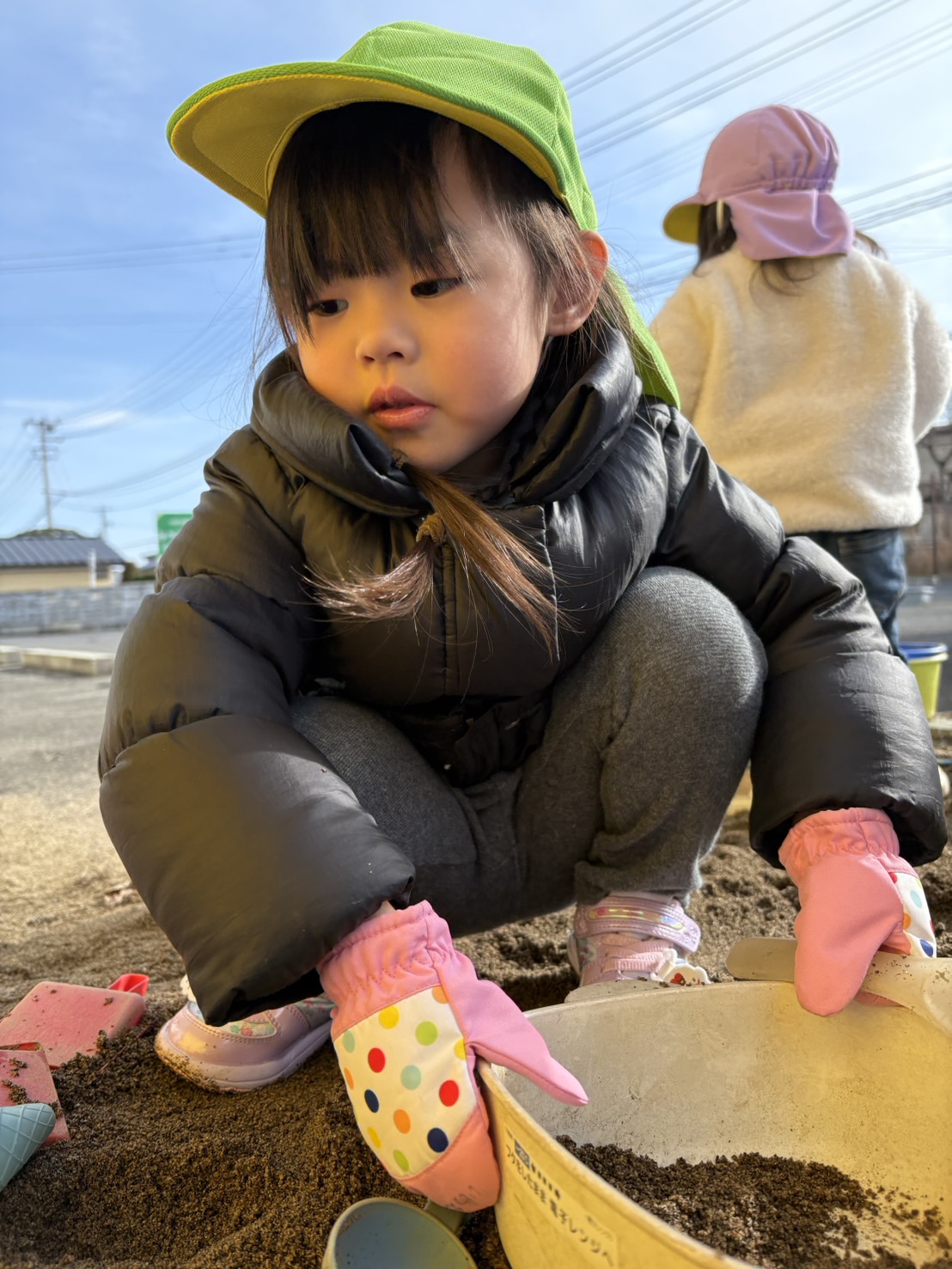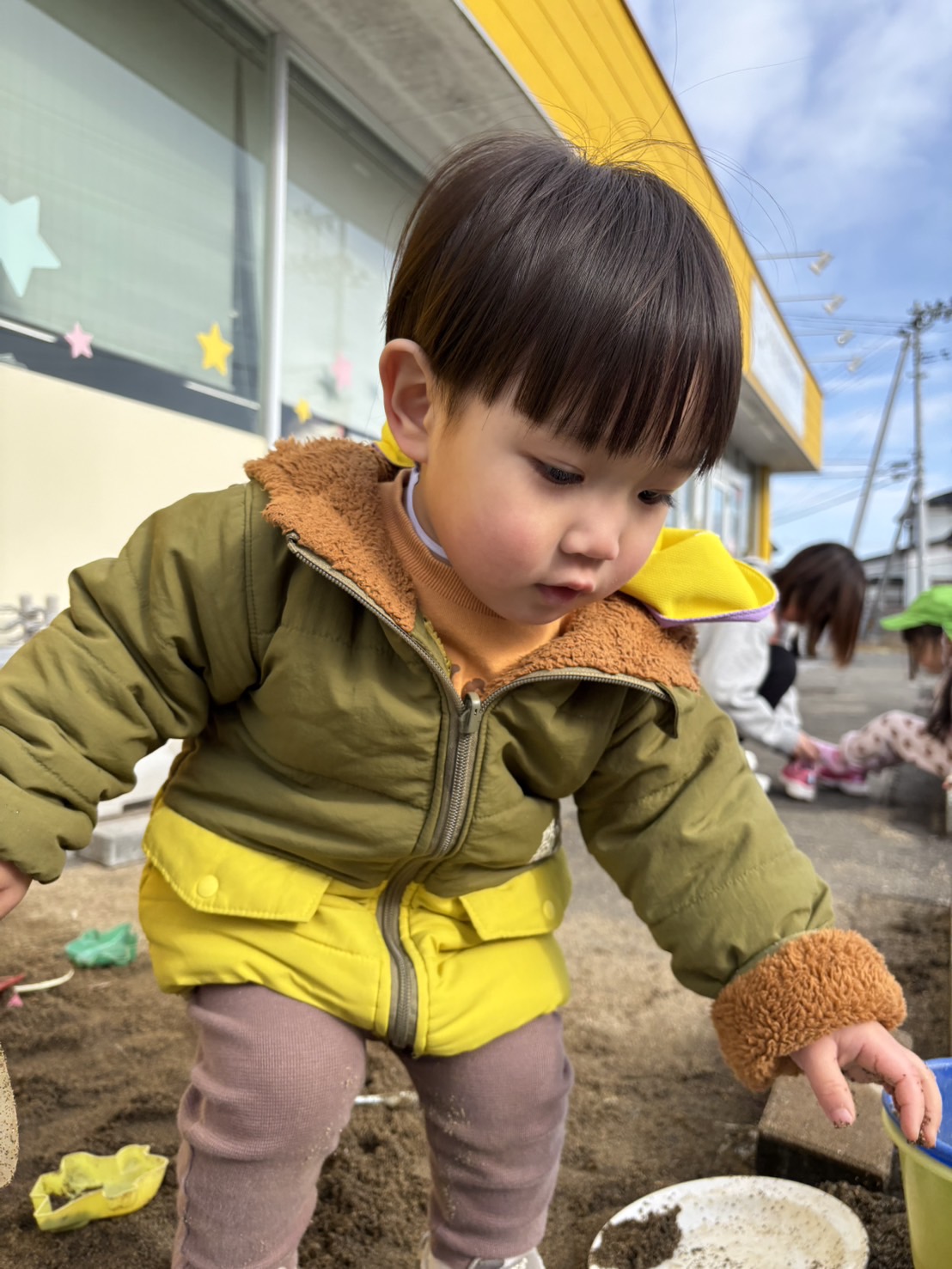 ぼくたちは、園舎前の砂場で遊びました🌟