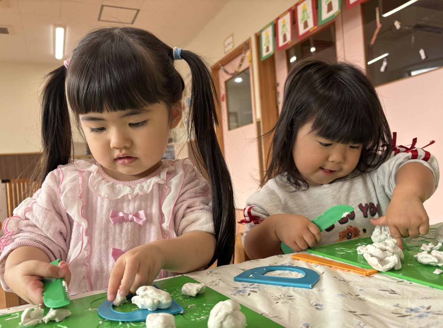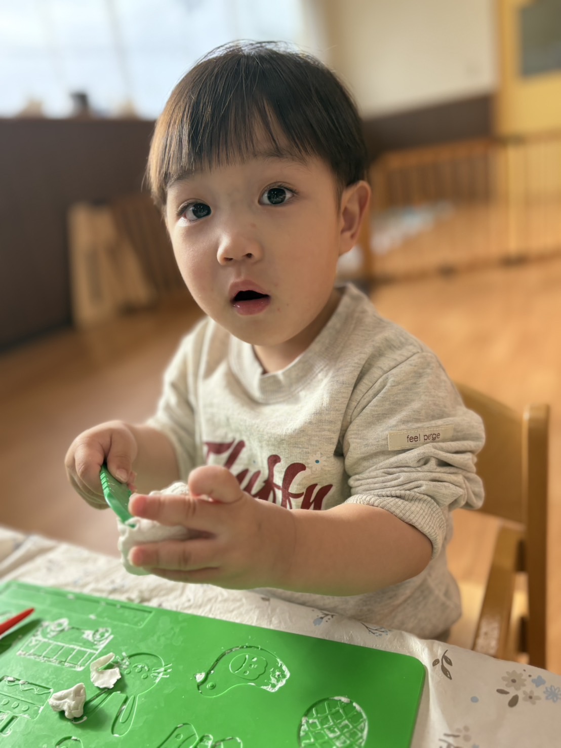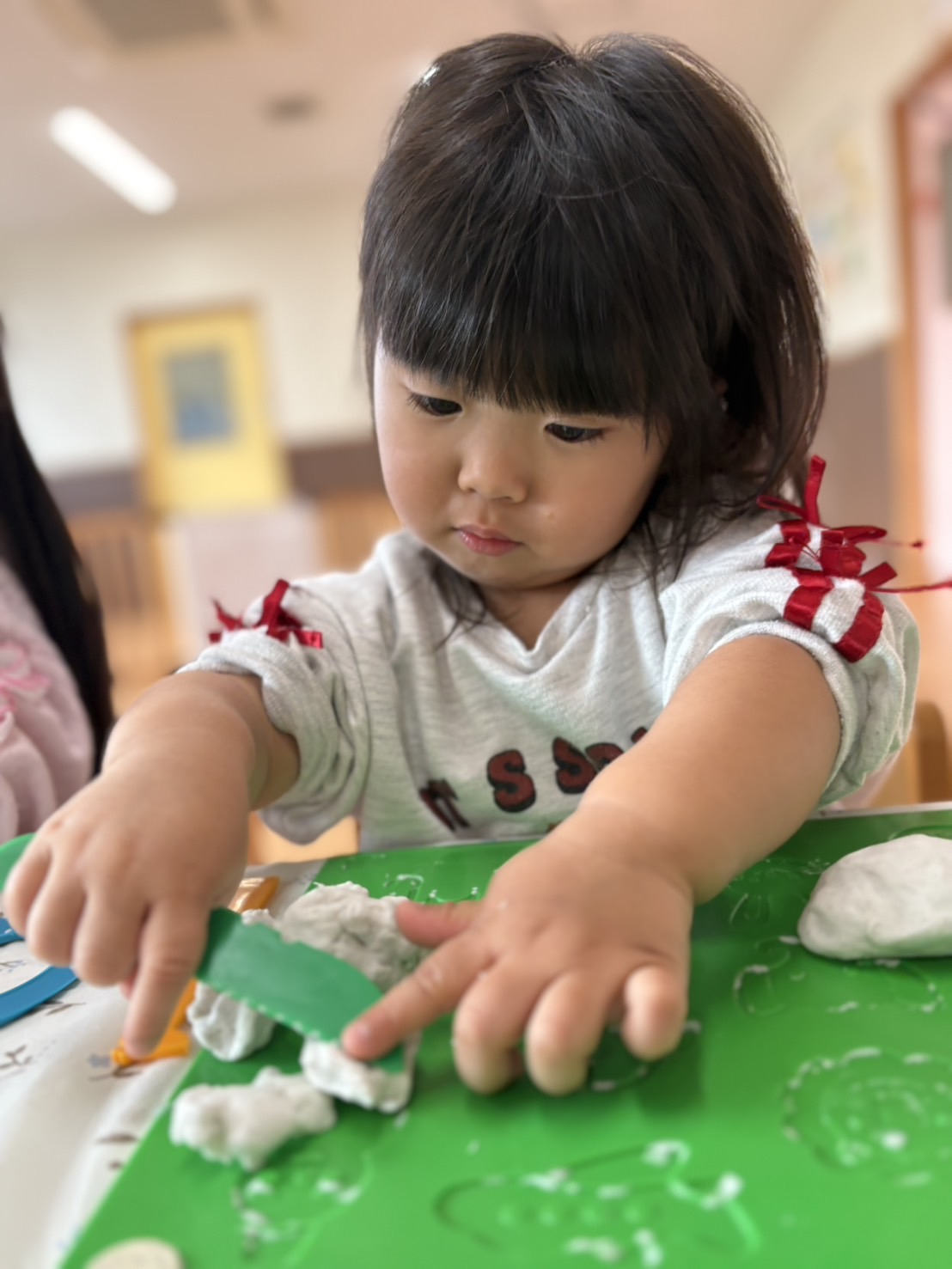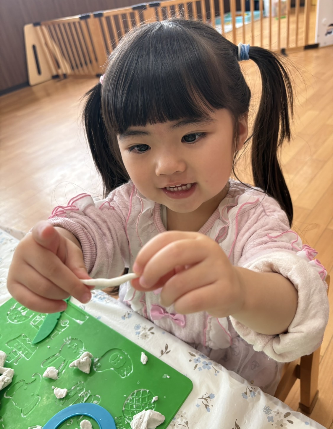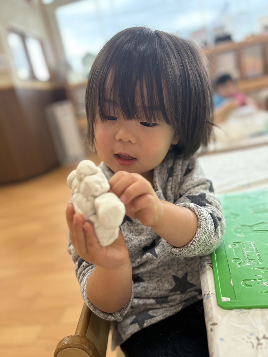 粘土の塊が長細く、ヘビさんみたいになりました〰️