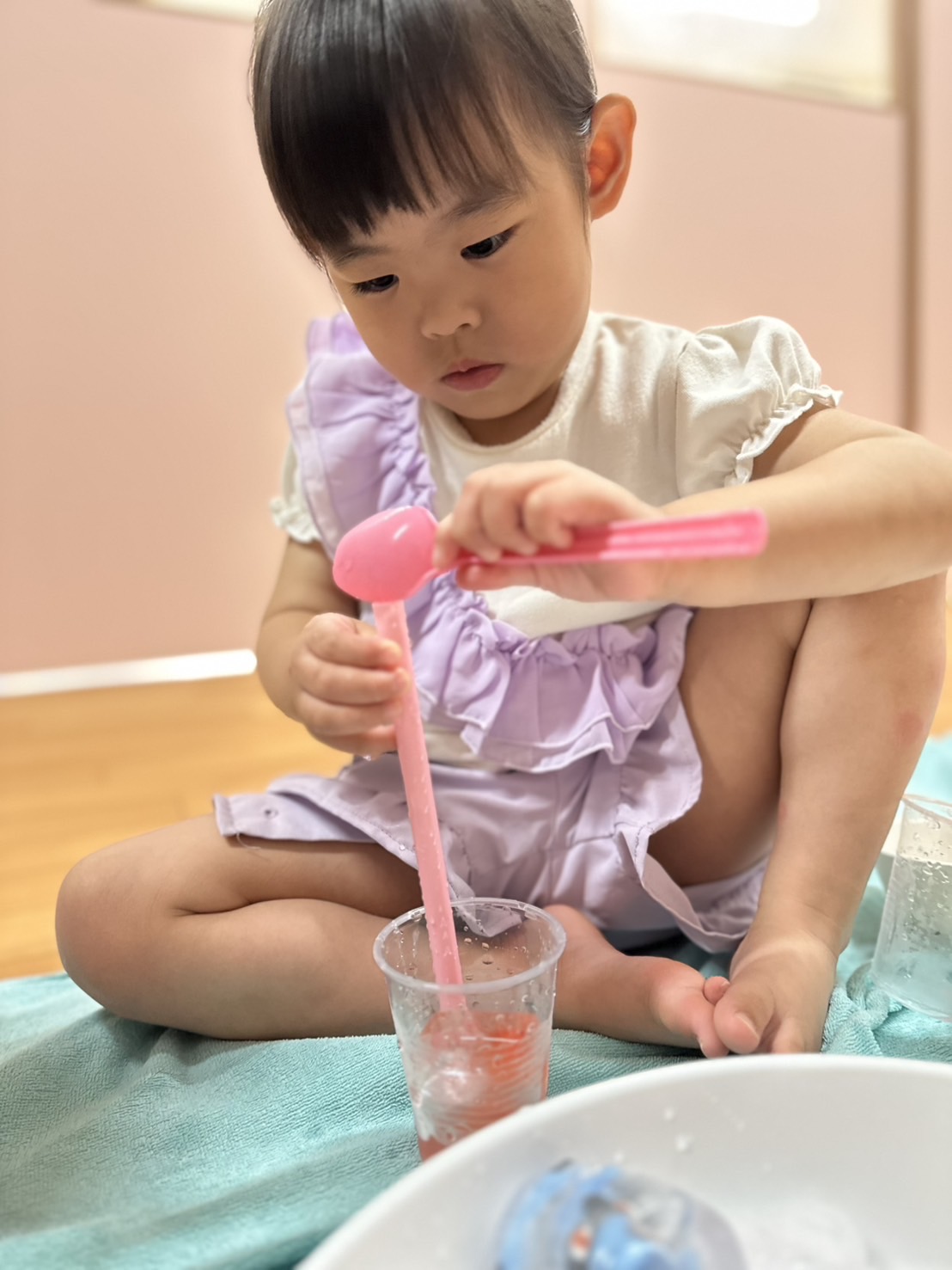 色が広がっていく様子に興味を示し、