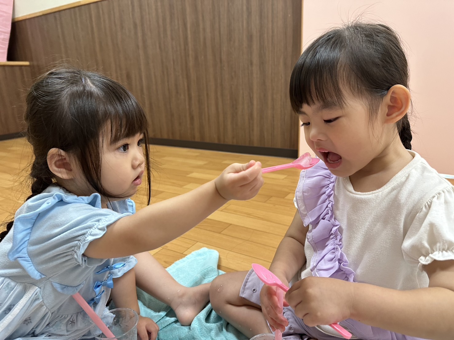 「あーんして!」と食べさせる真似をしたりして