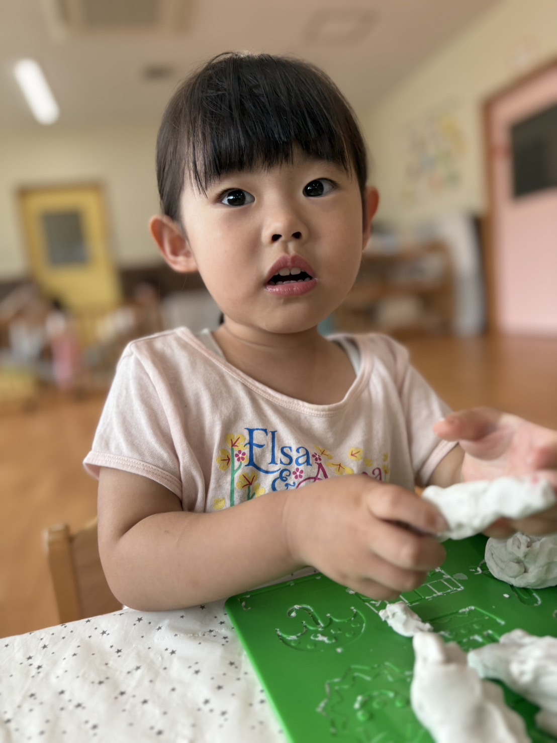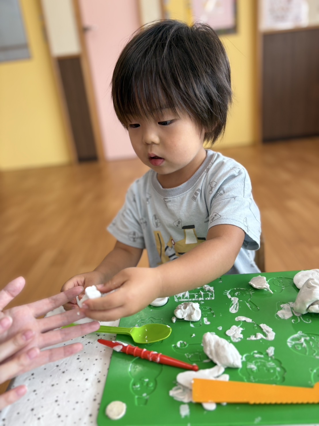 細長くして、粘土の感触を楽しんでいました😊