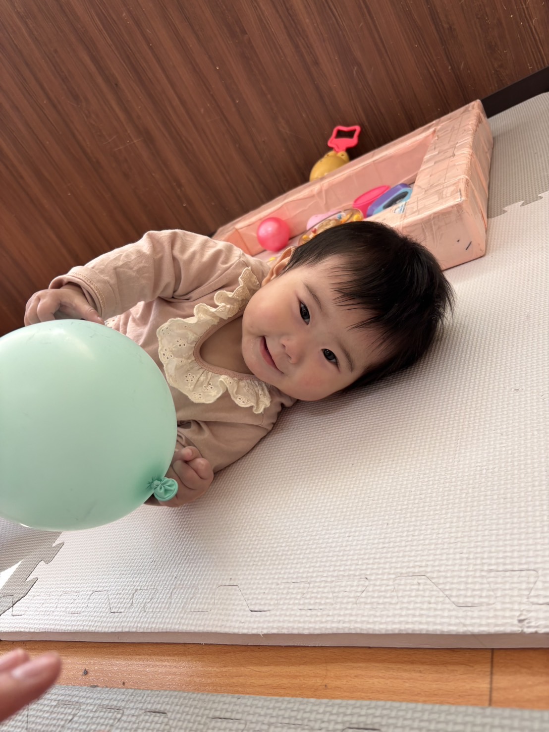 私はゴロンと寝て風船に触れたり、腹這いで風船を追いかけたりしました💕