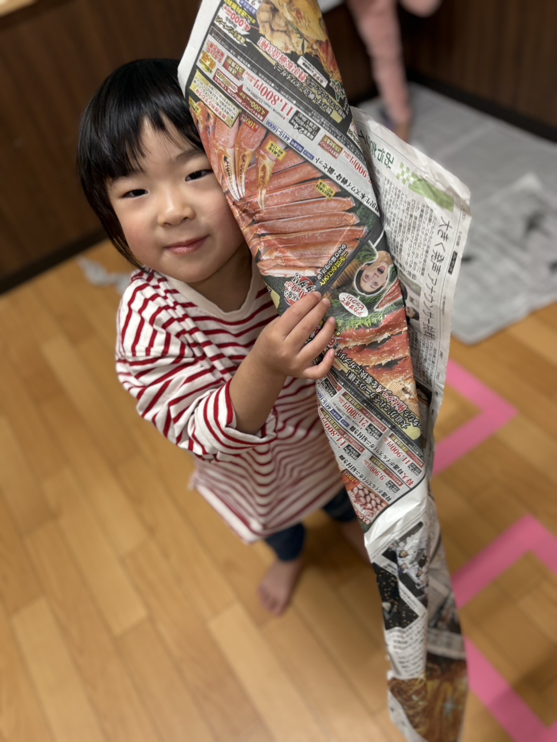 新聞紙で遊びました🗞