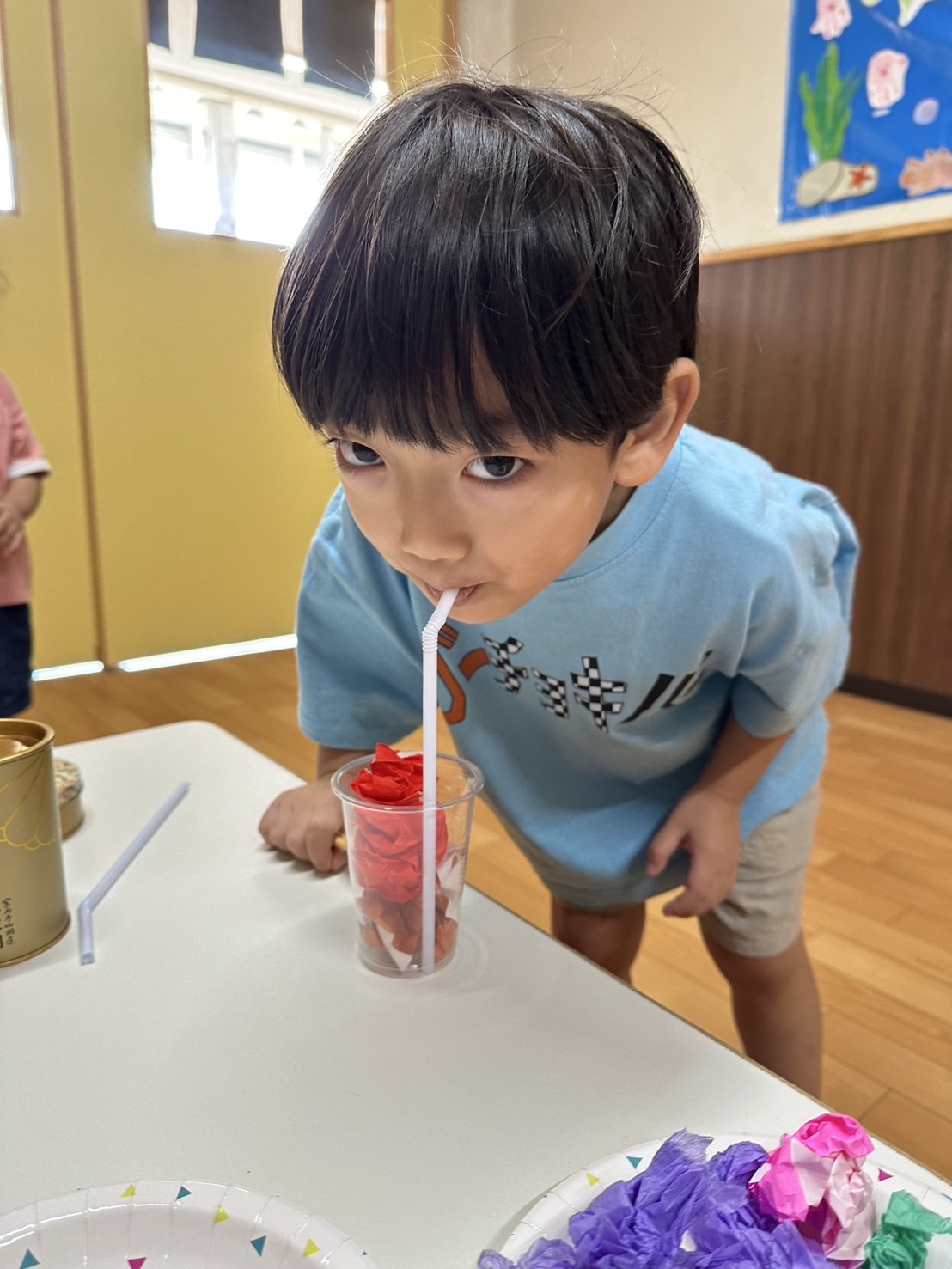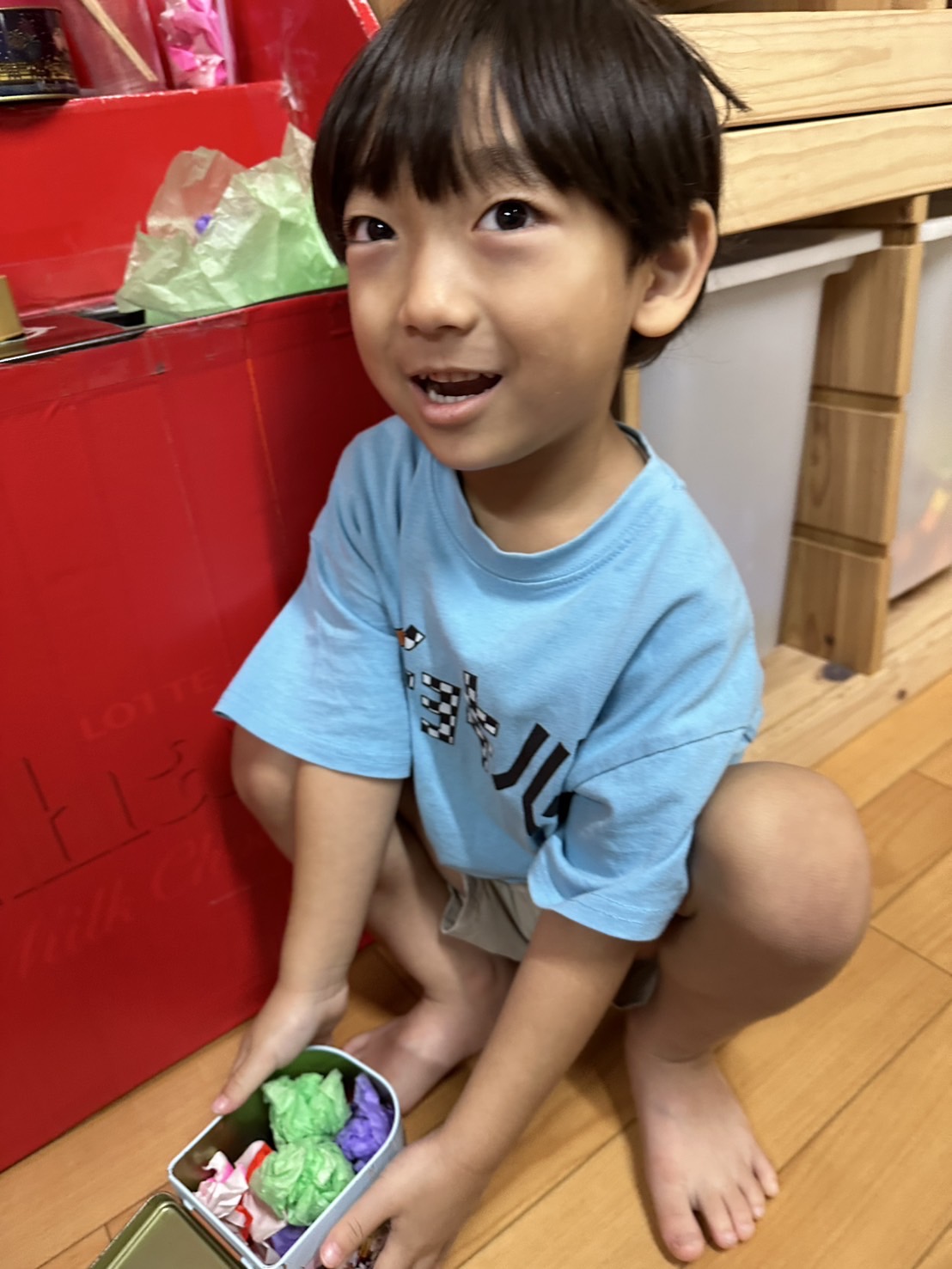 僕は、花紙や折り紙を缶の中にたくさん入れて