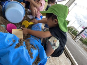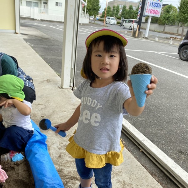園舎前で砂あそびをしました😊🎶