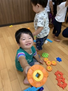 0歳児さんたち「お片付けだよー!」の声が聞こえると