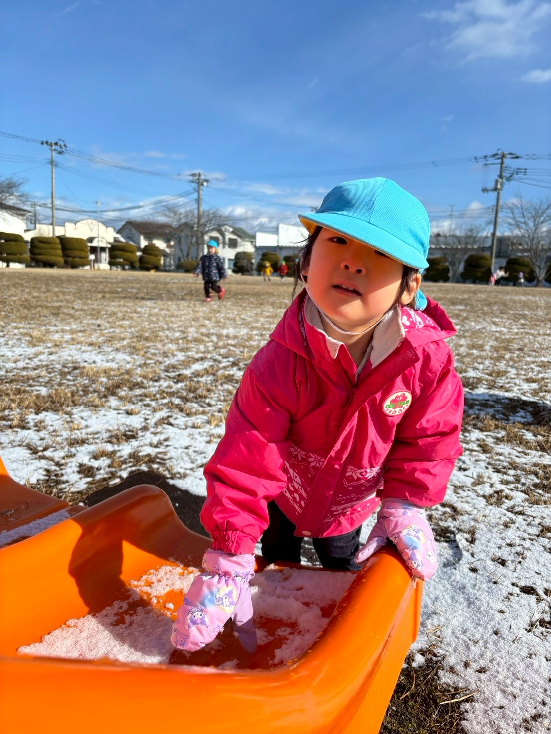 雪に触れた後は、お友だちや保育者と一緒に