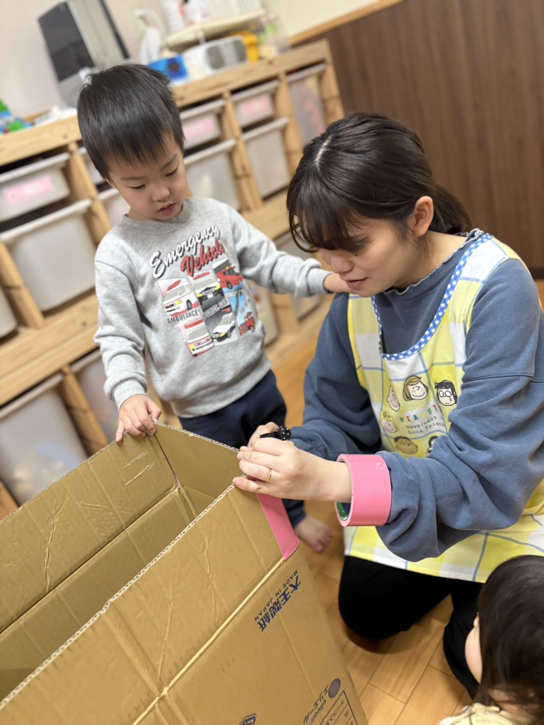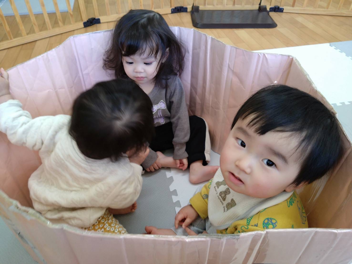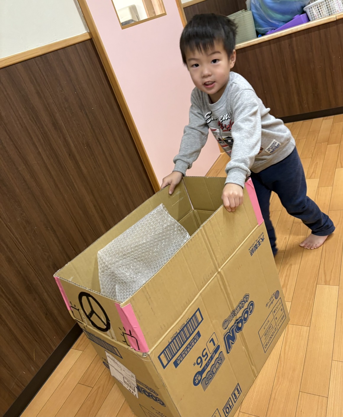 1、2、3歳児さんは、ダンボールで遊びました📦❤️