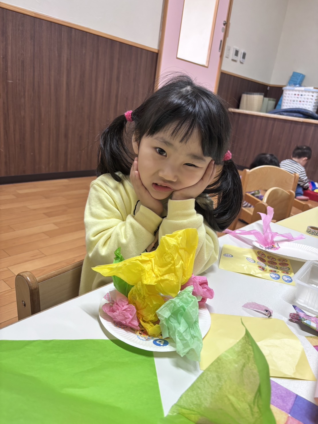 1、2、3歳児さんは、折り紙や紙皿を使って好きなものを作りました✨