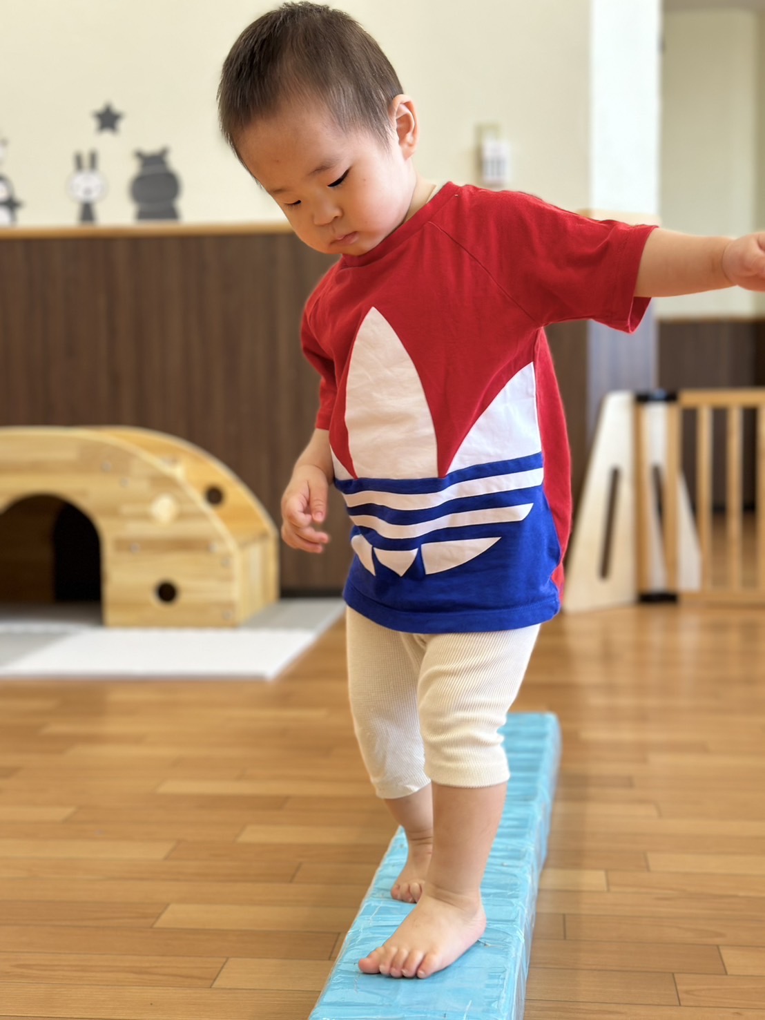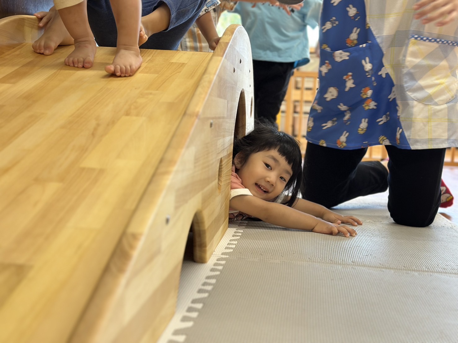 トンネルをハイハイで進んだり、平均台を歩いたりしました♪