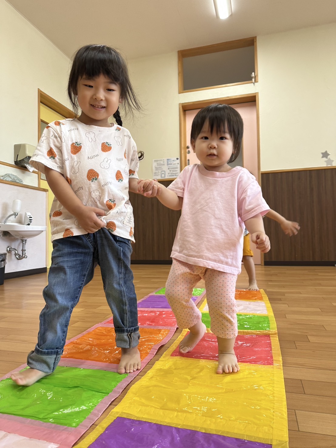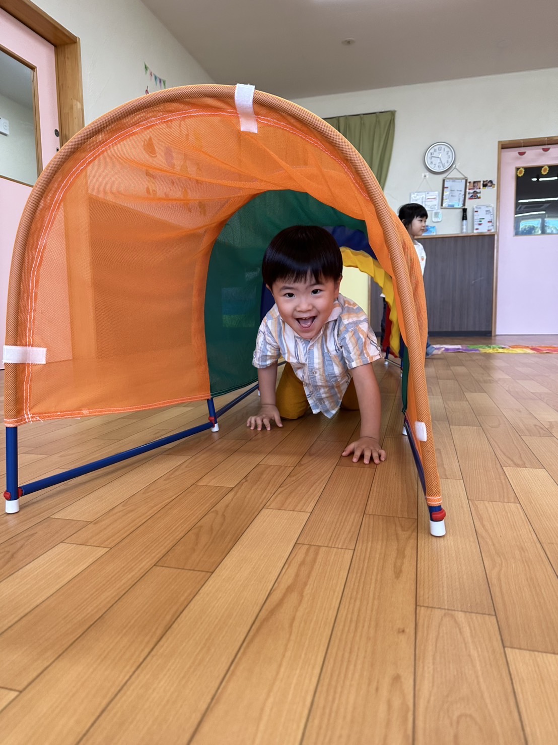 トンネルをハイハイで進んだり、平均台を歩いたりしました♪