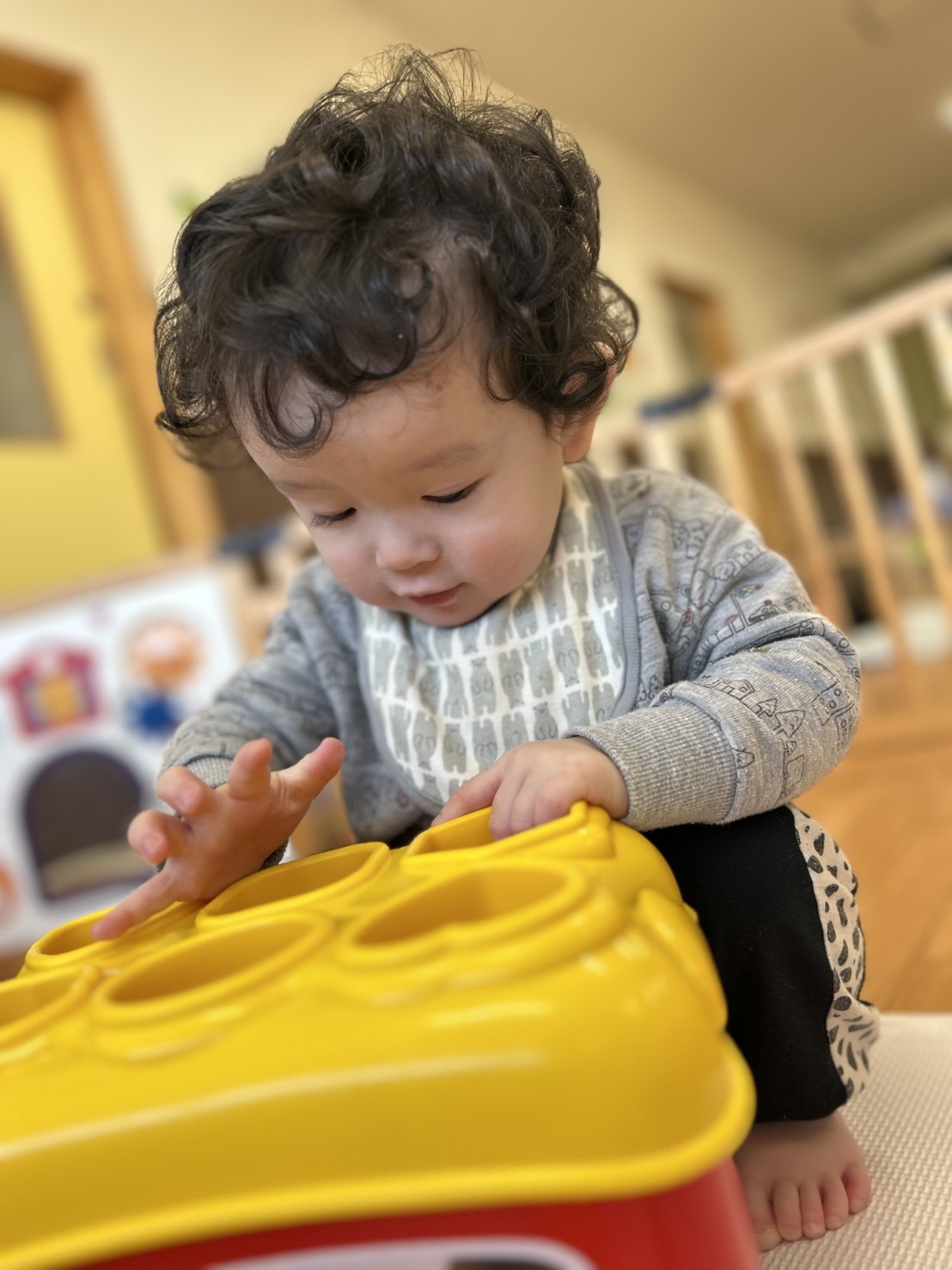 その後、0歳児さんはポットン落としで指先をたくさん使って遊びました💓
