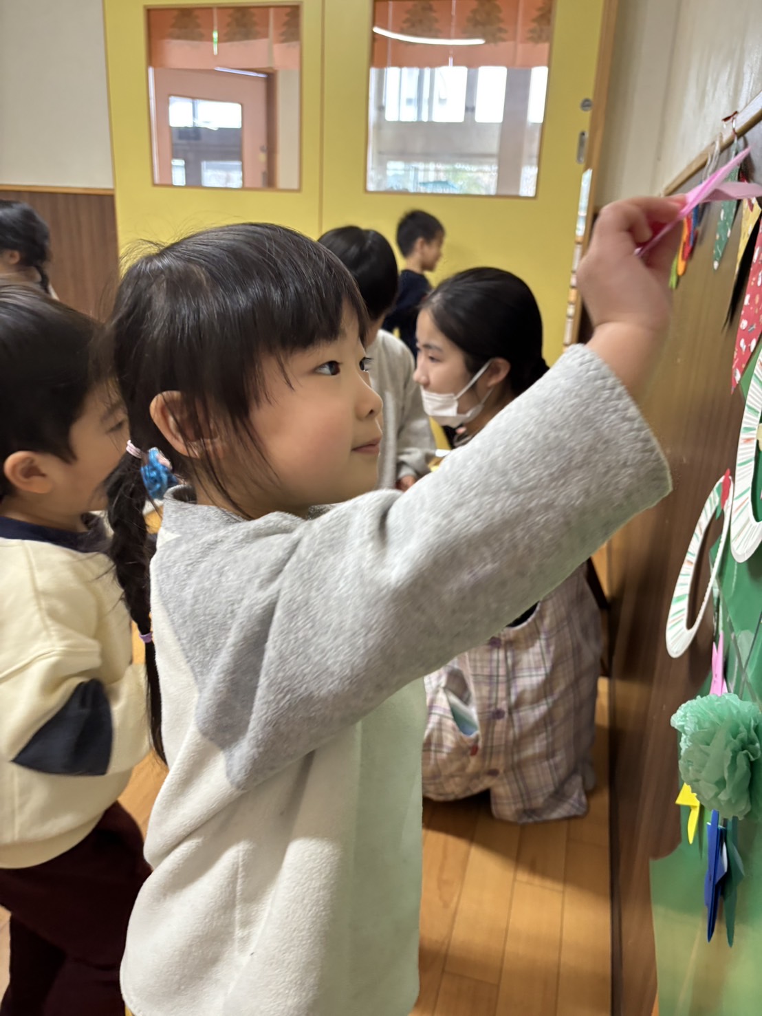 その後は、部屋中に貼ってあるクリスマスツリーの飾りを探して