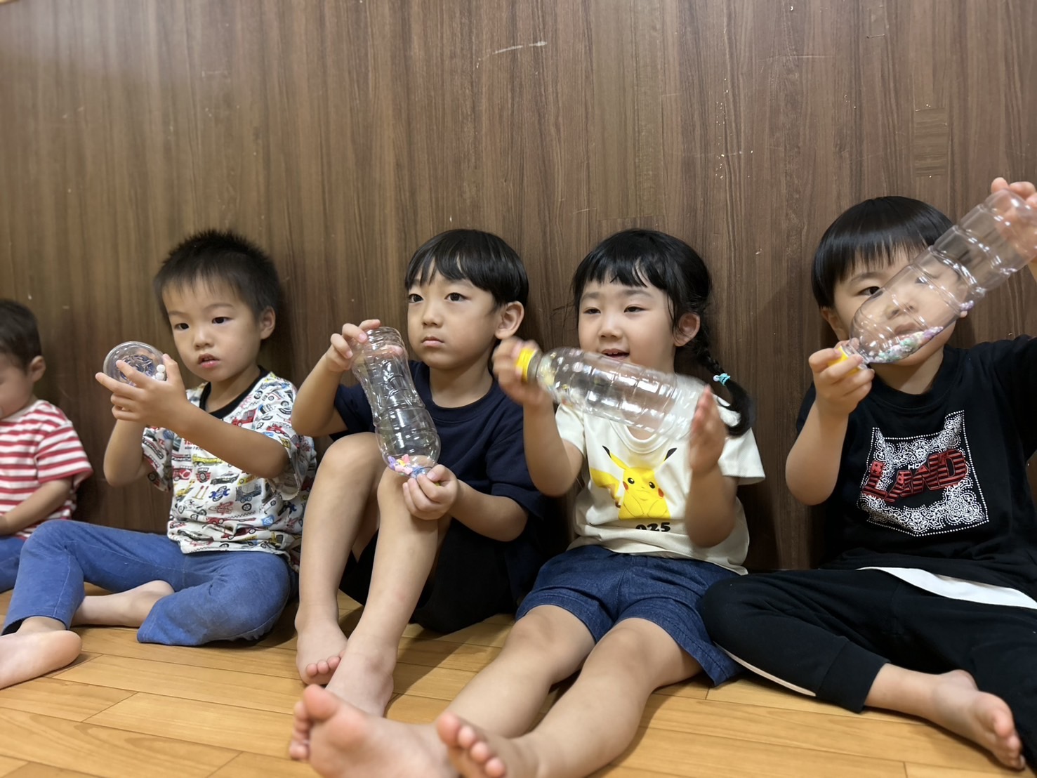 中にビーズが入ったペットボトルマラカスを使い、音を楽しみました♪