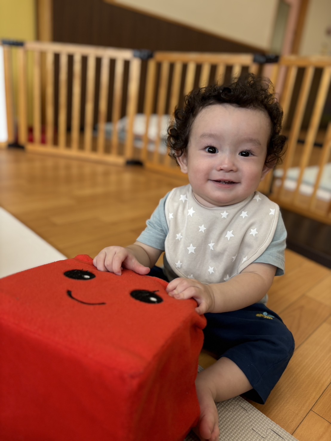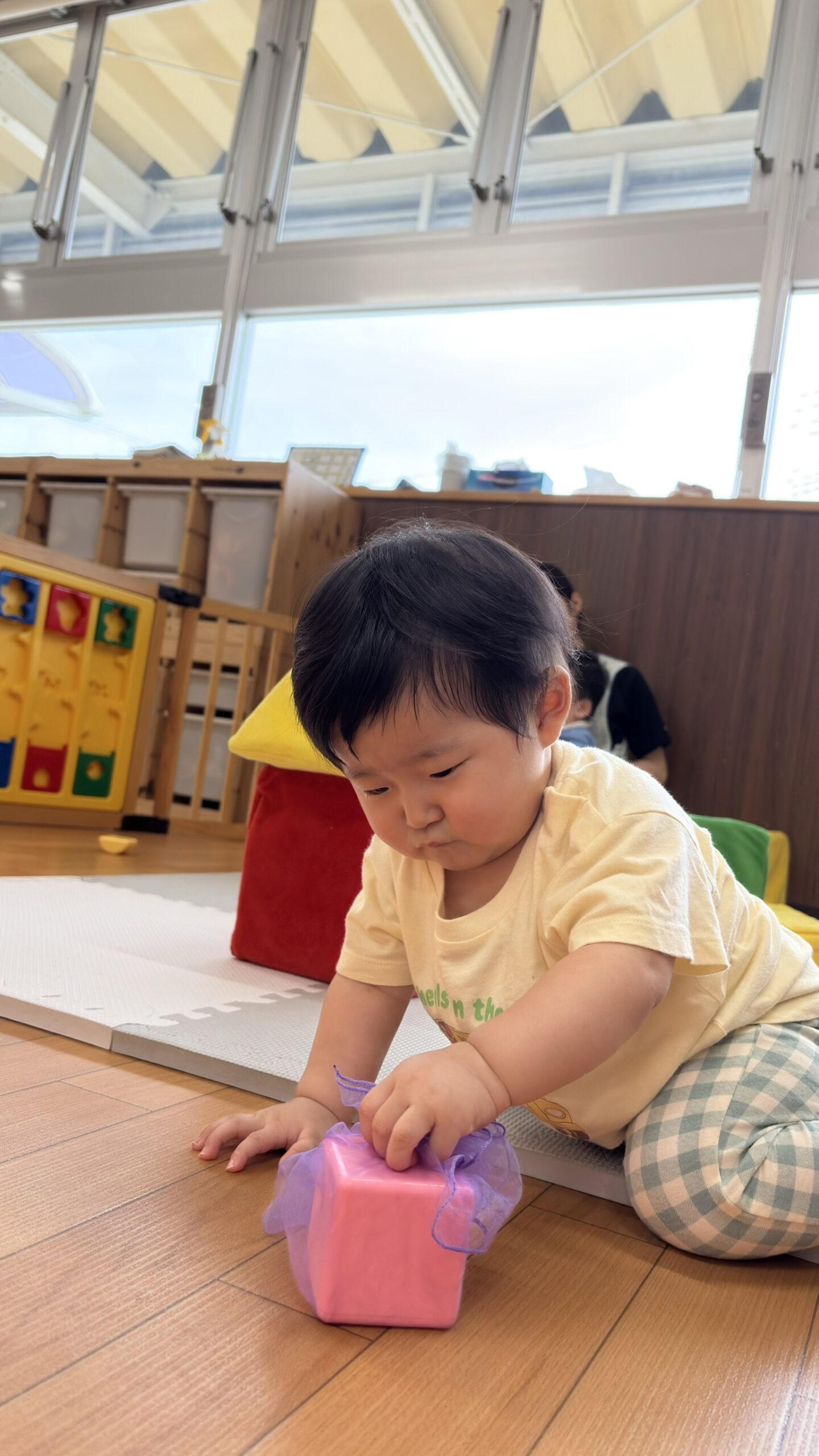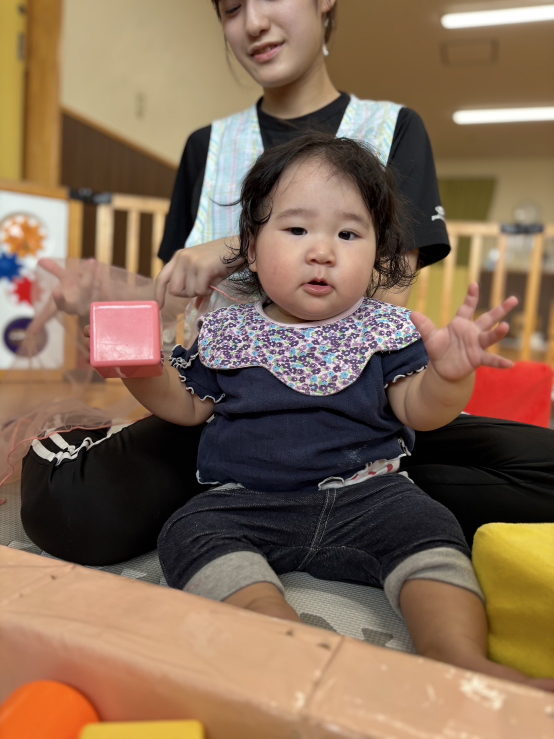 私は積み木を握ったり、形を見たりしていました👀