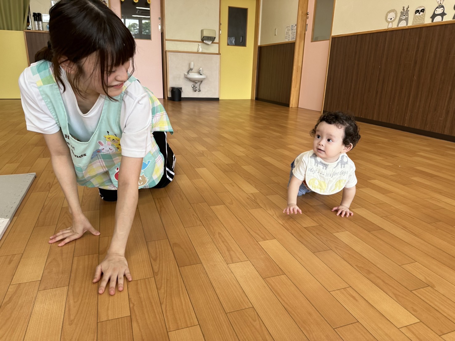ずりばいやハイハイをして