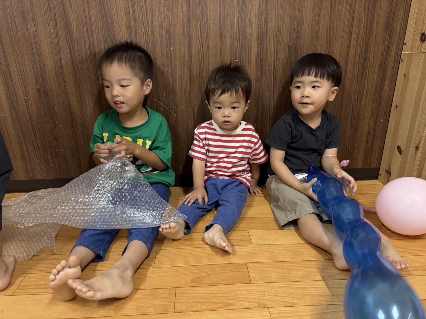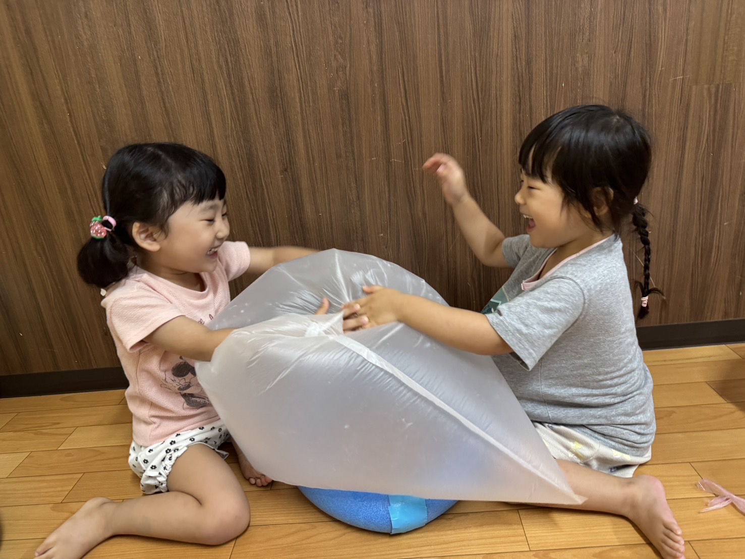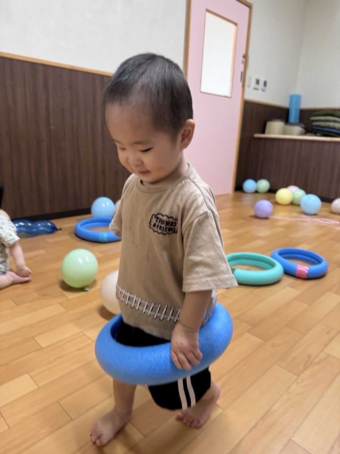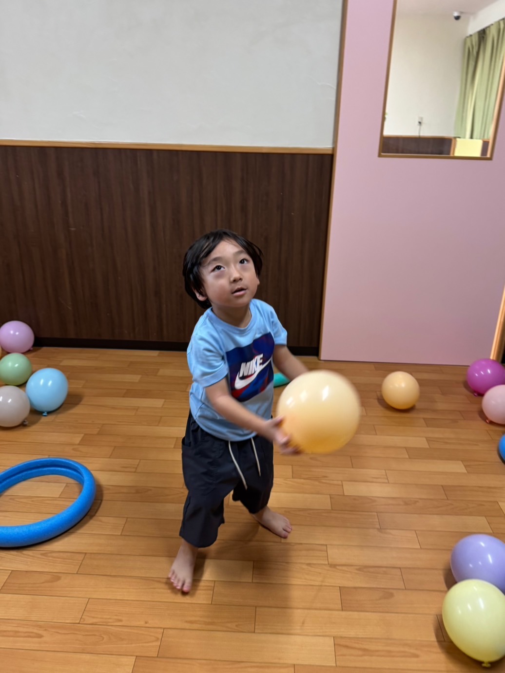 日中は、風船やフラフープを使って
