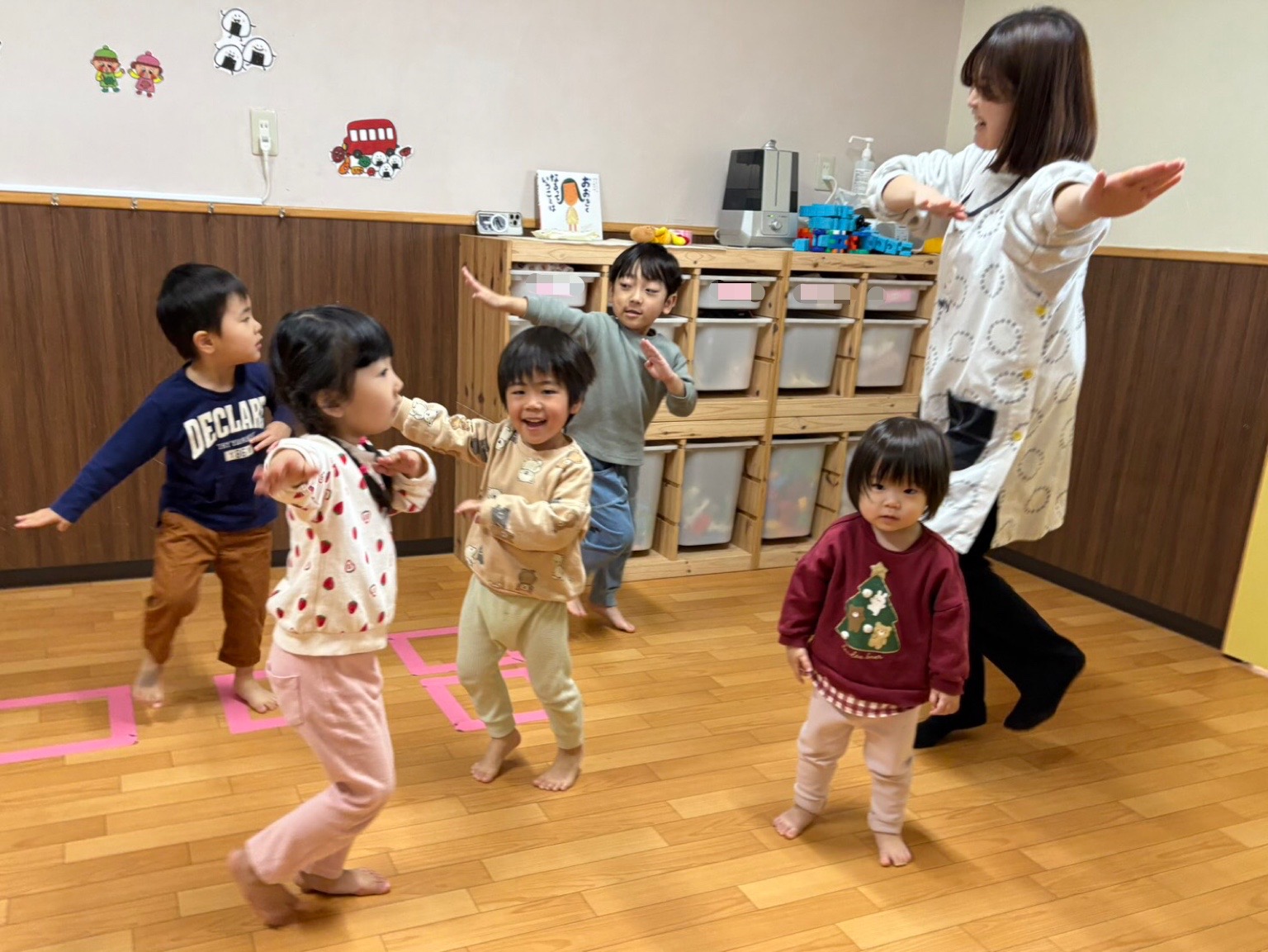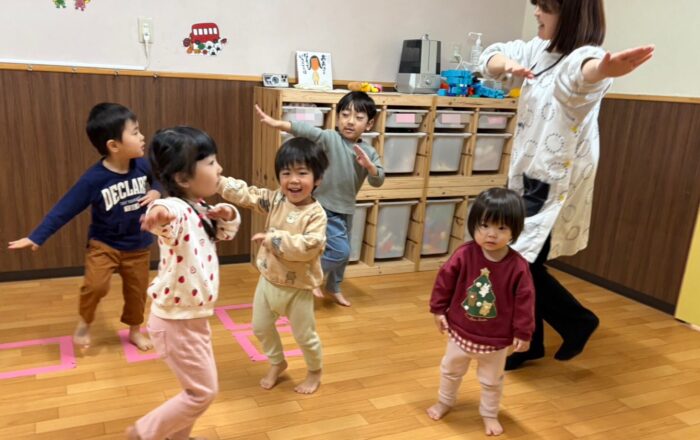 1、2、3歳児さんは体操をしているところです🎵