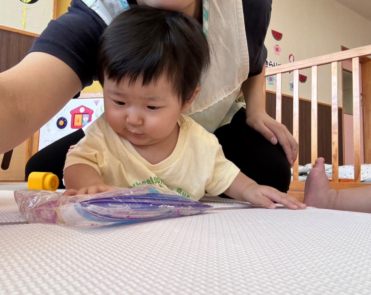 わたしたちはいろいろなおもちゃで遊び、感触を楽しみました♪