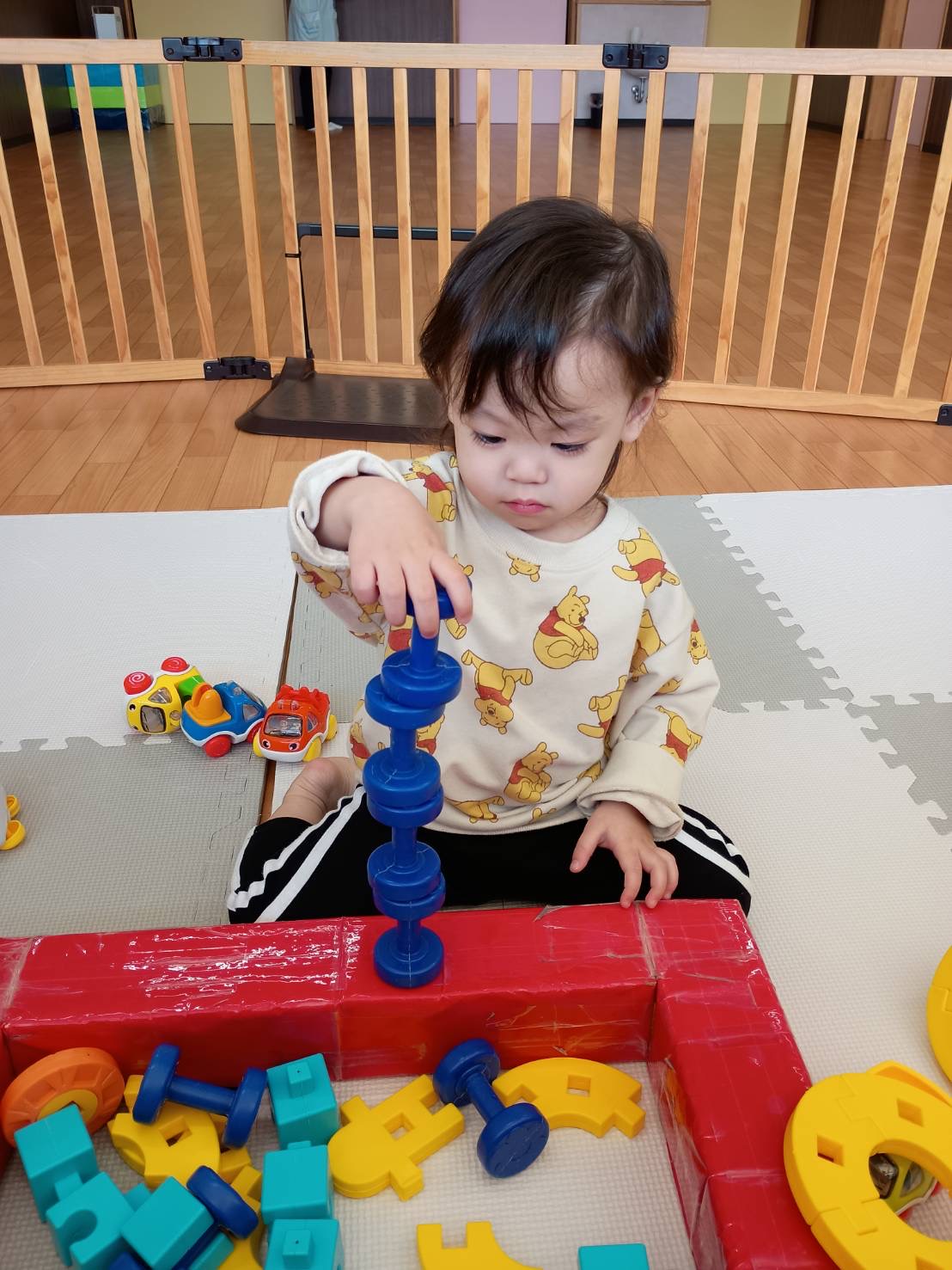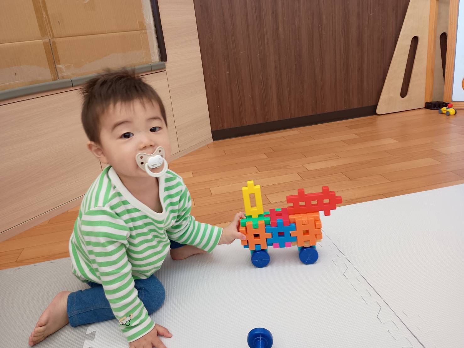 今朝はブロックを積み重ねたり、