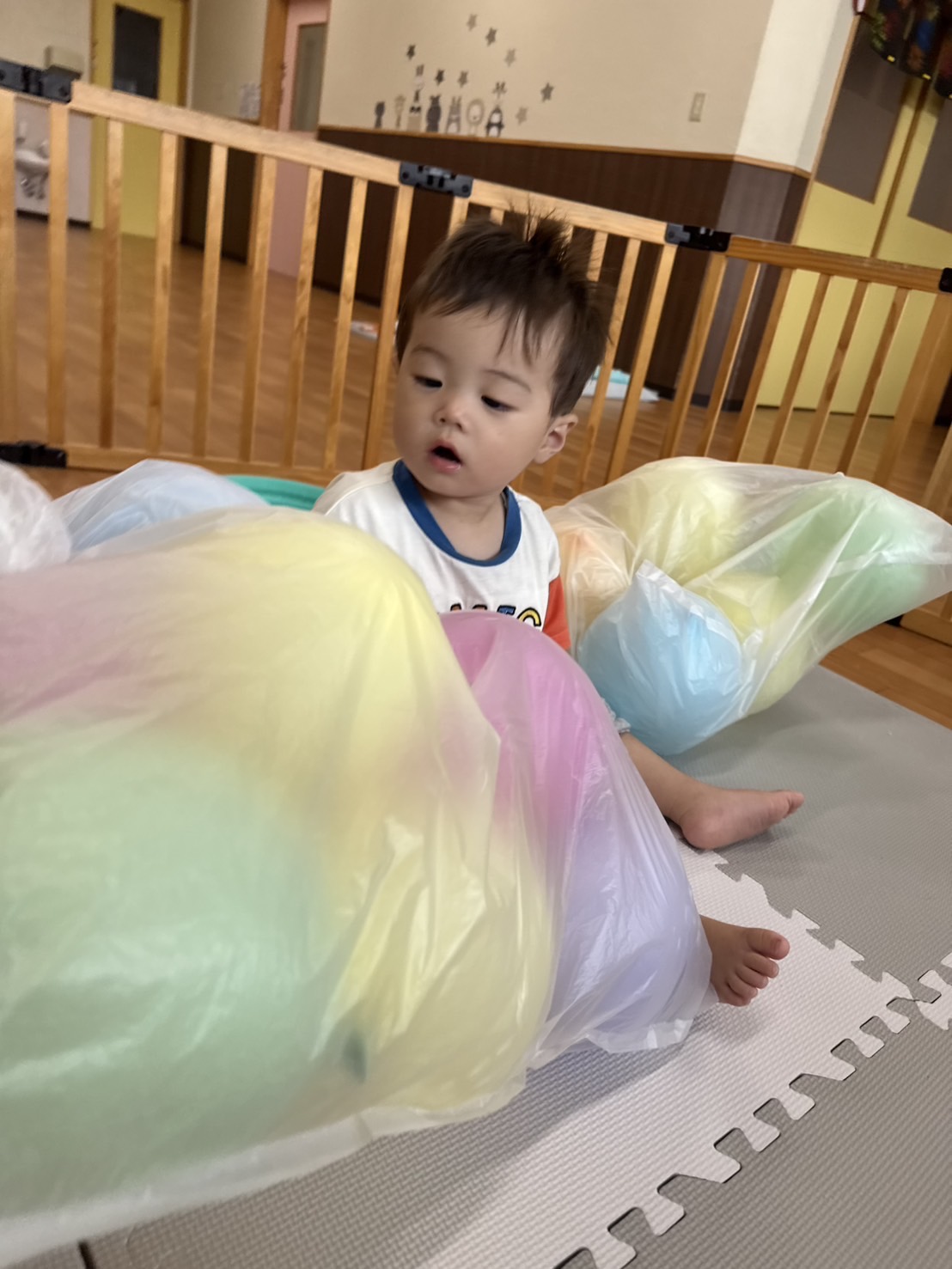 大きな袋に風船を入れて遊んだよ🎈🎶