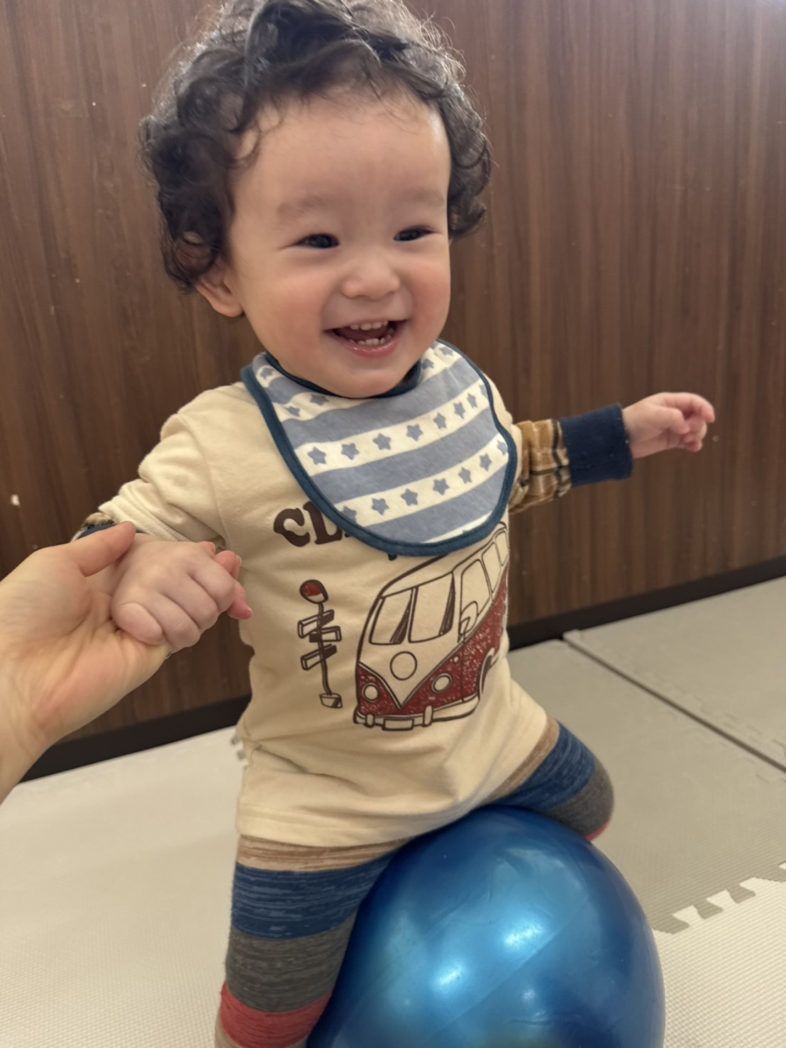 大きなボールの上でボヨン❣️ボヨン❣️