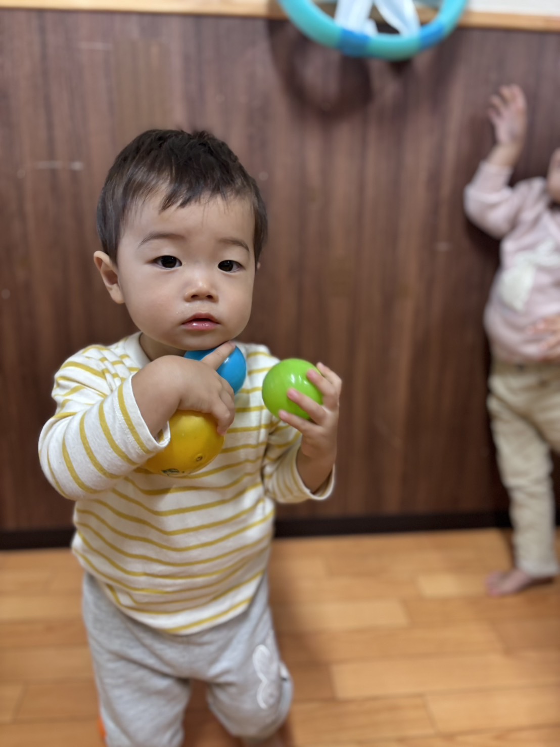 ボールをたくさん両手に抱えて運んでいました🌟