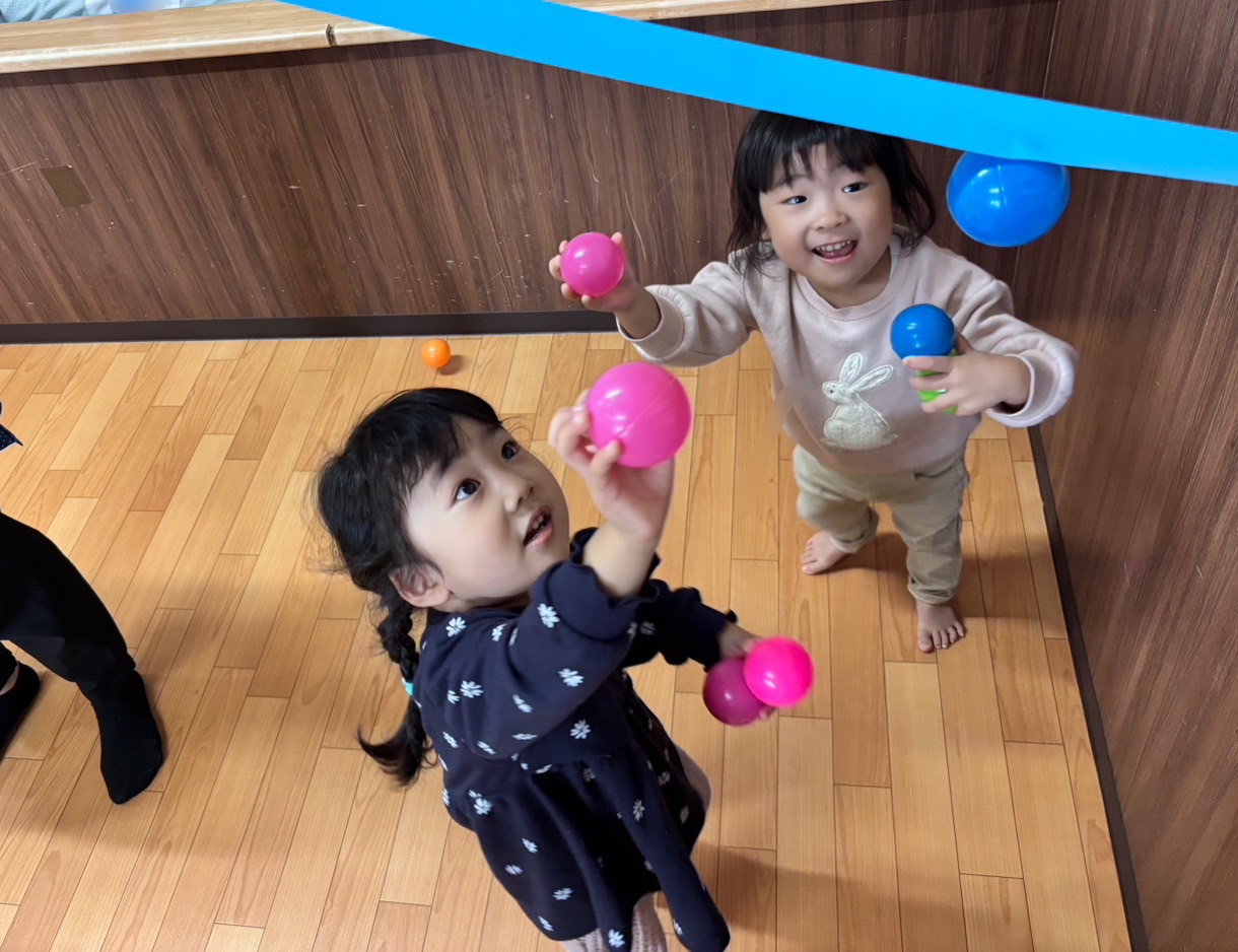 ボールがたくさんくっつくと、「イルミネーションの飾りみたいだね😊」と嬉しそうでした💓