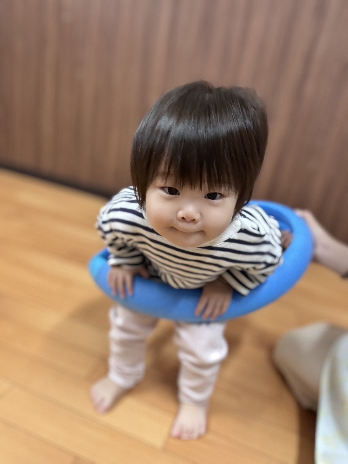 的当ての枠を浮き輪に見立て、嬉しそうでした😊💓