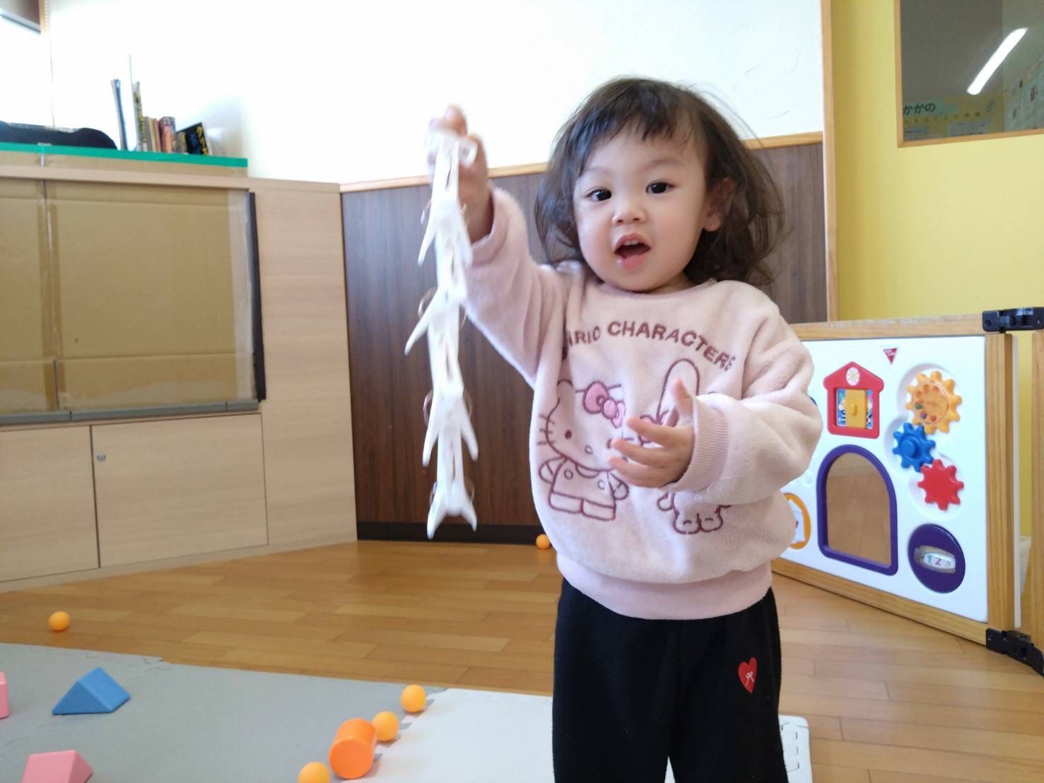 0歳児さんは、ピンポン玉の感触が気に入り、