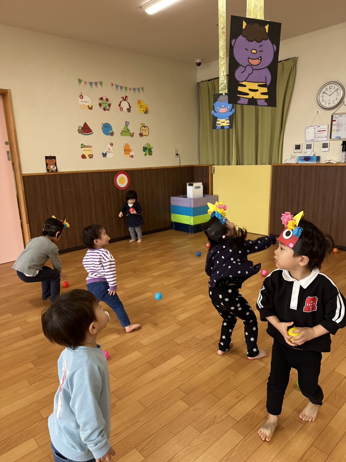 みんなで鬼にボールを投げました🫘