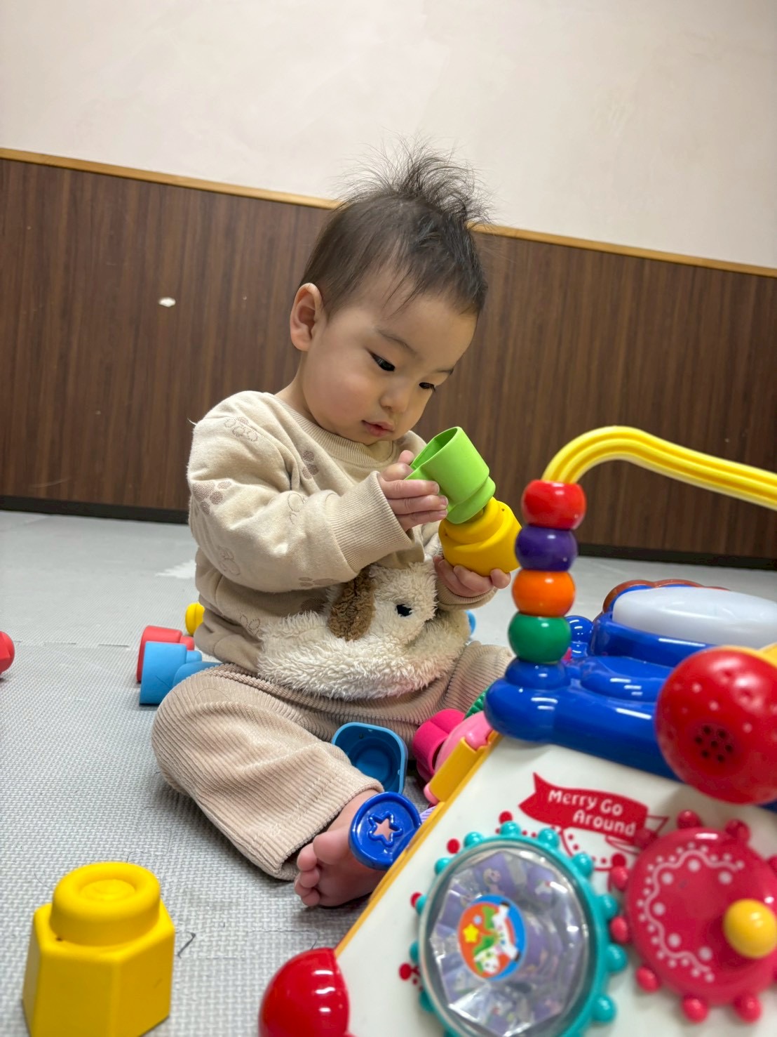 お昼寝後は柔らかいブロックで遊びました♬