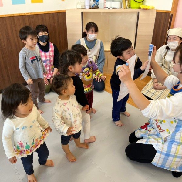 保育者から「楽しいこといっぱいするよー❣️」と
