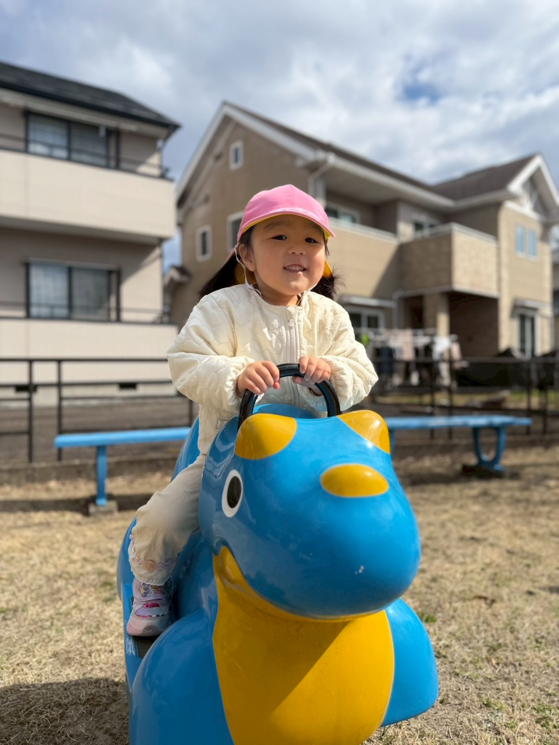 今日は恐竜のスプリング遊具がある