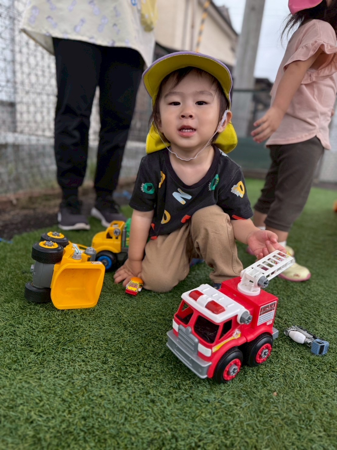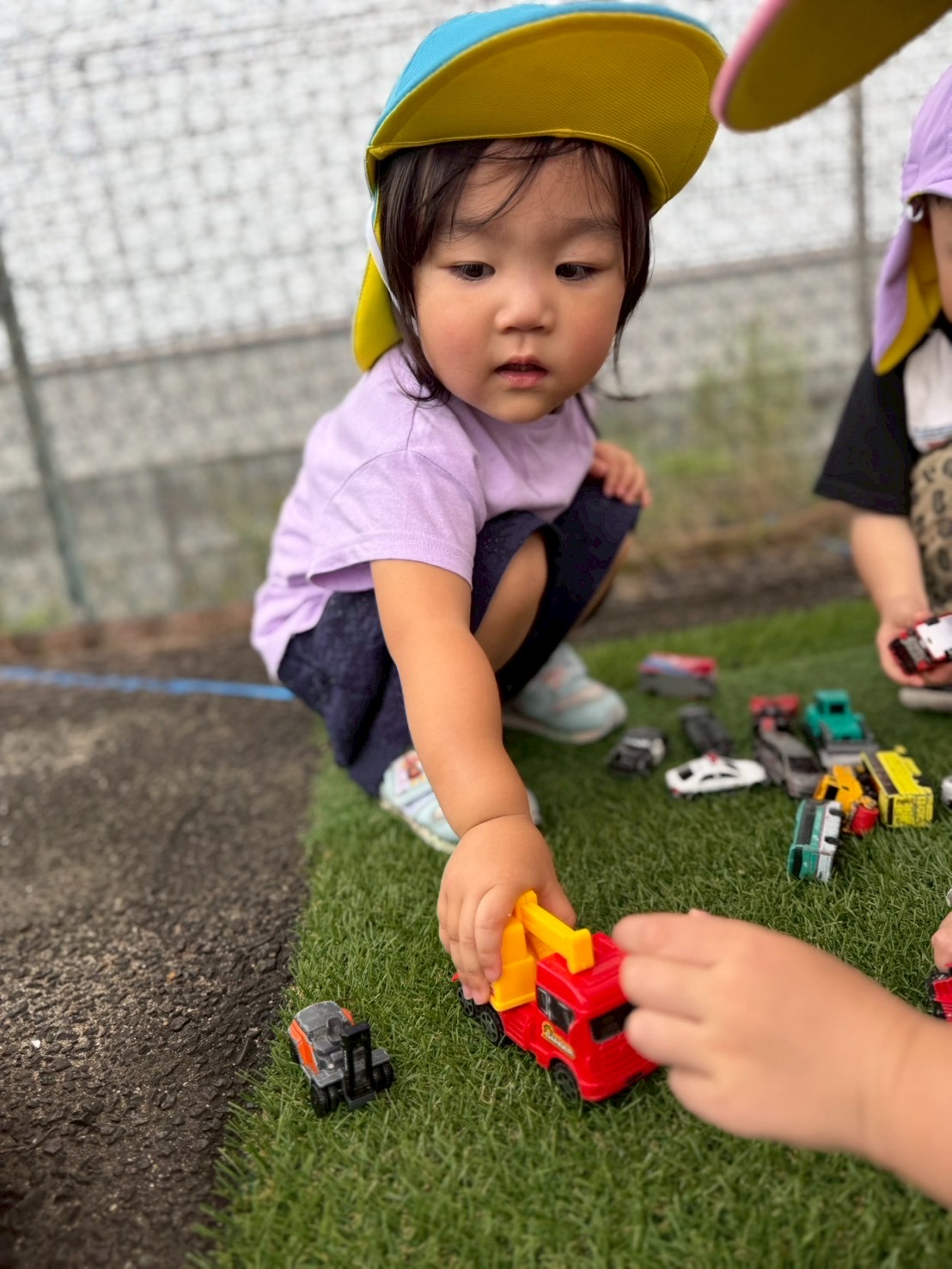 車のおもちゃを「どれがいいかな?」と選んで遊びました(*^_^*)