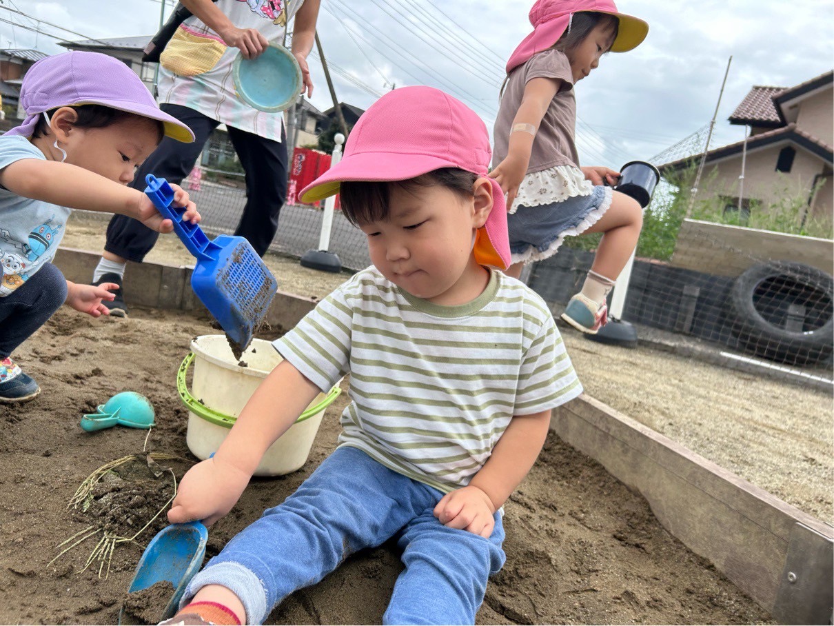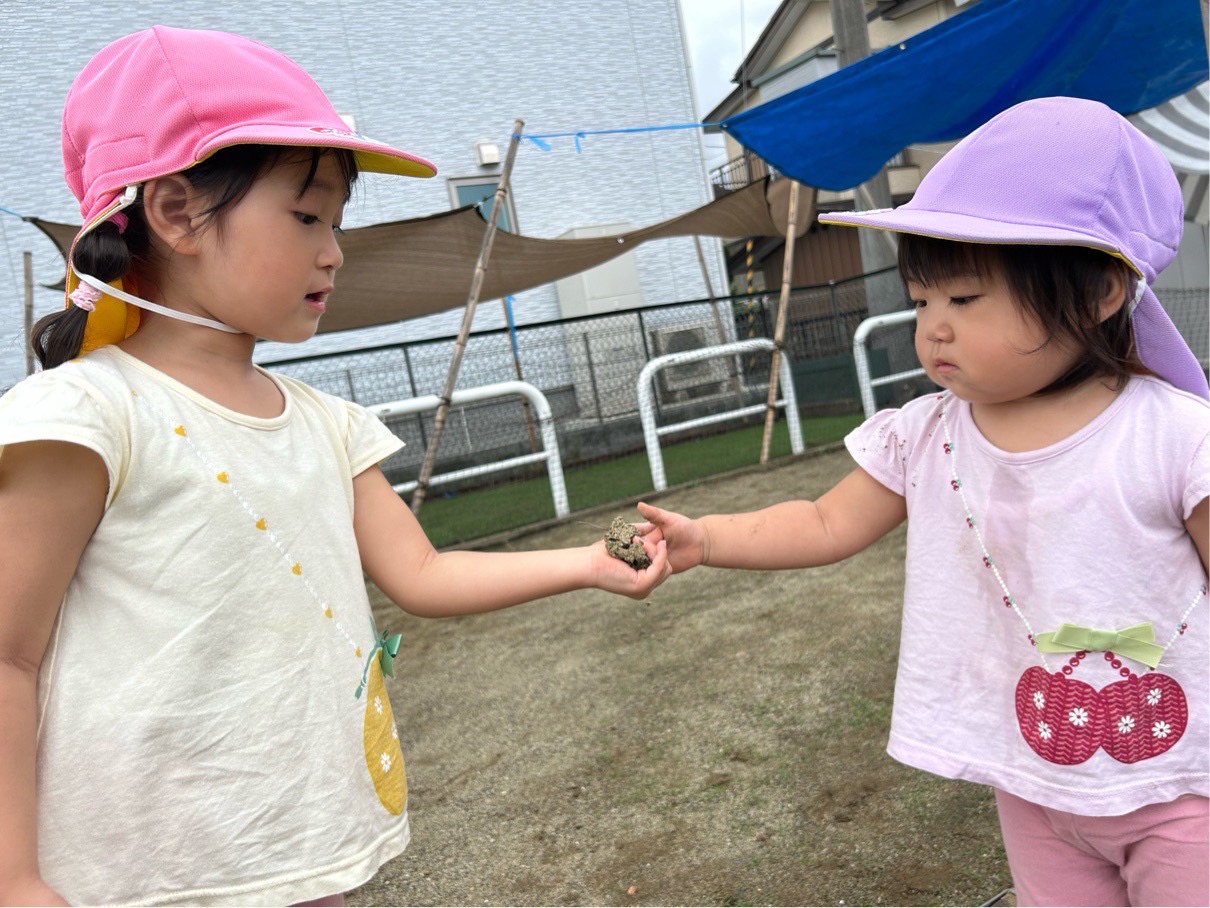 今日は園庭で砂遊びをしました❣️