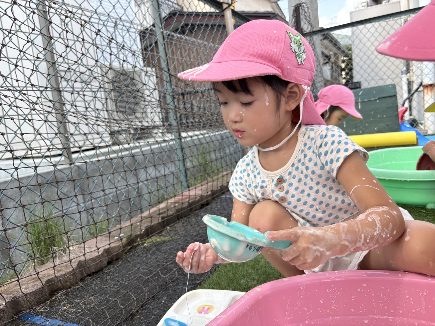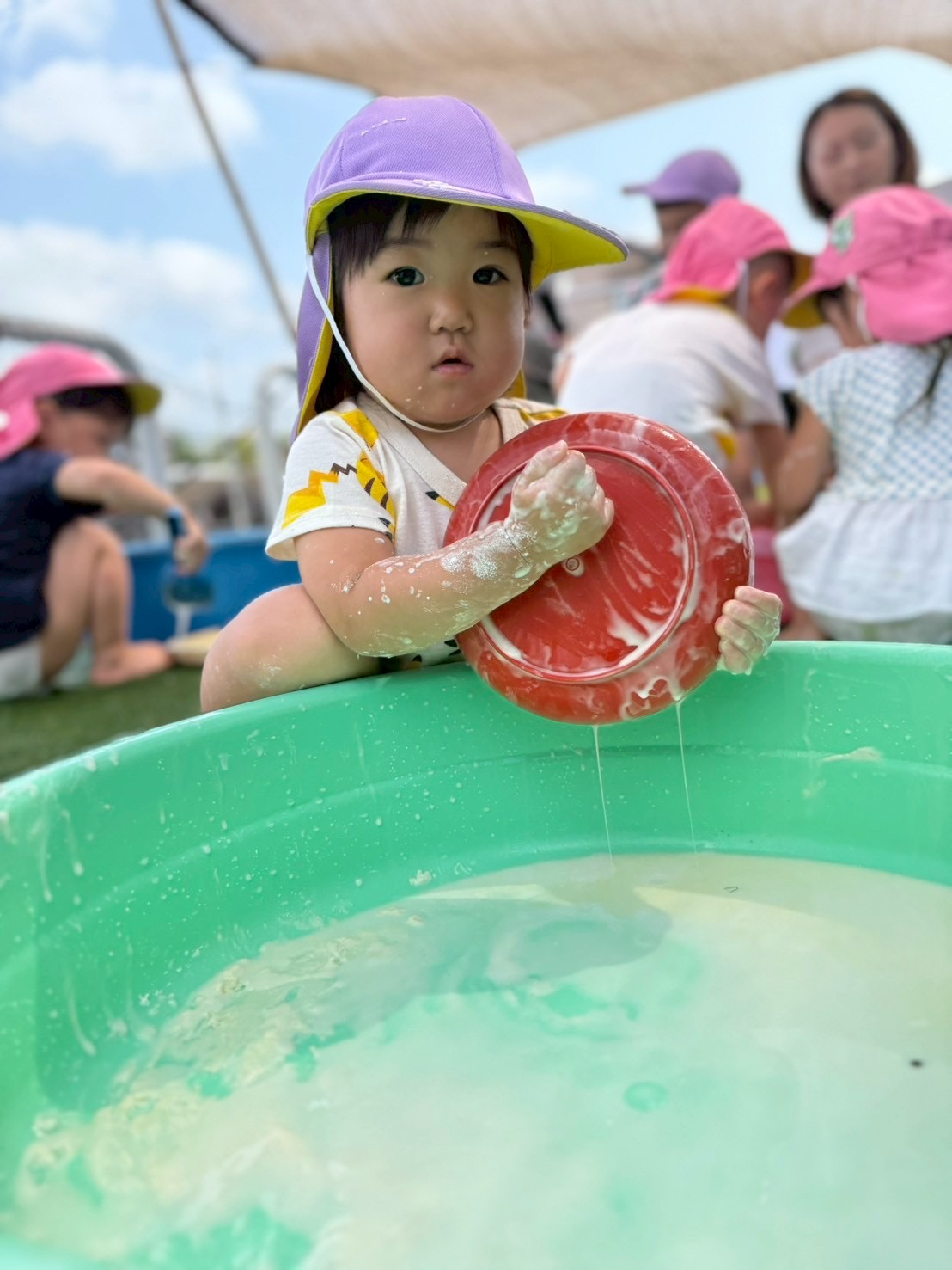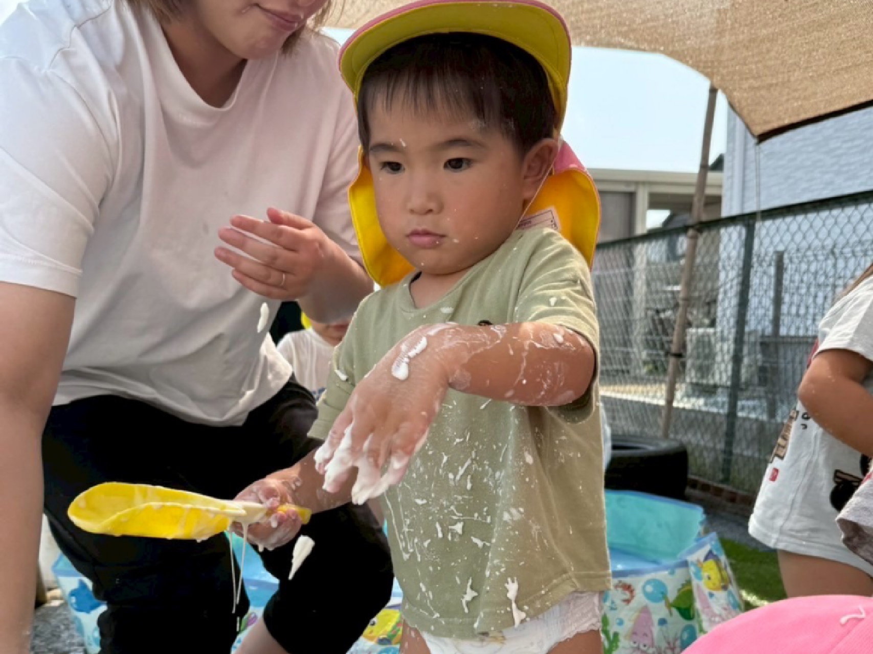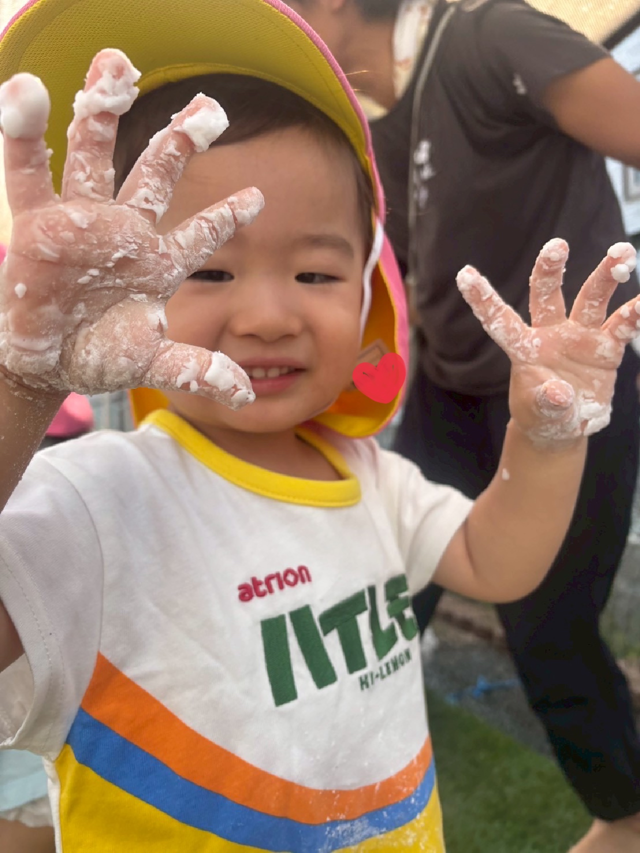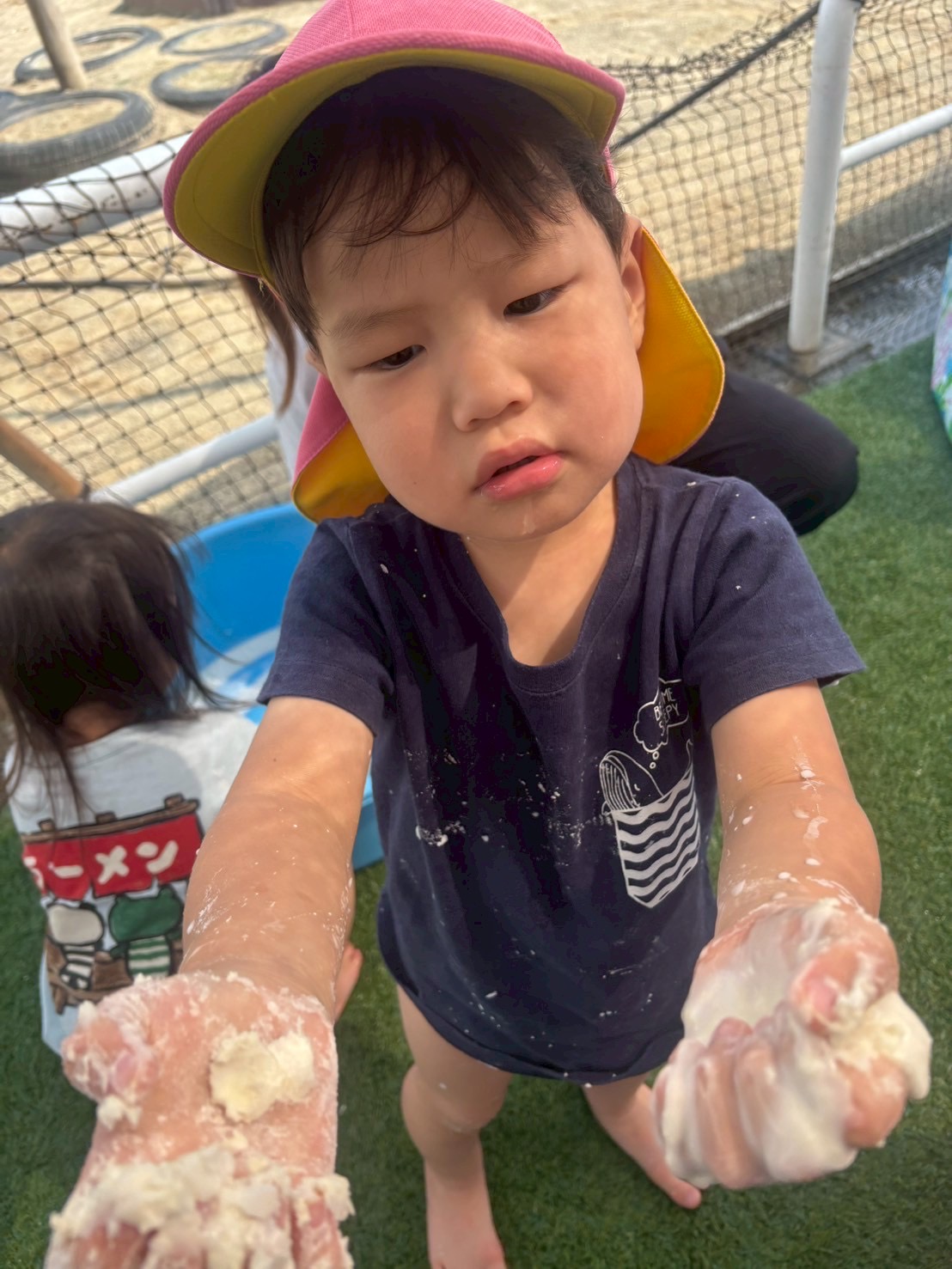 片栗粉を使って、感触を楽しみました(*^_^*)❣️