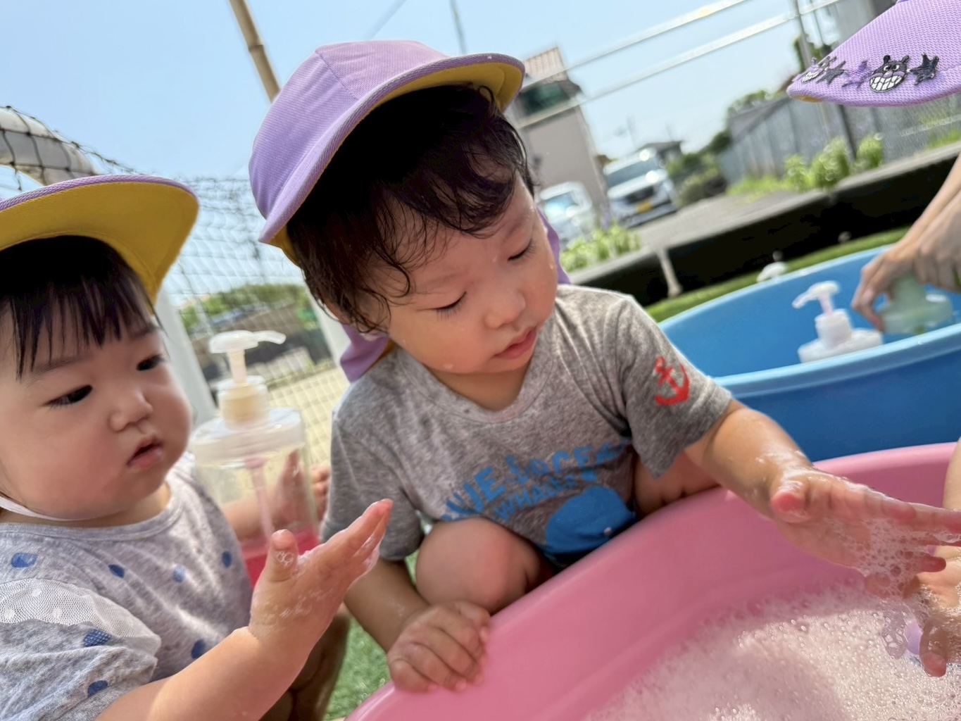 どうやったら水が出てくるかな❓と,一生懸命力を入れたり,玩具を使って集中して頑張っていました😁