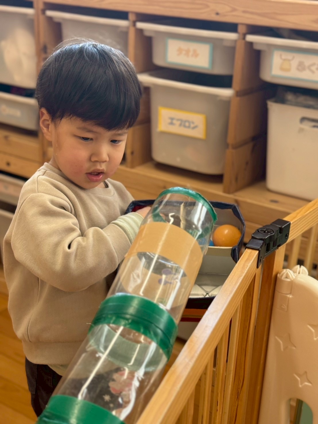 ぼくは筒にボールを入れることに夢中🥰