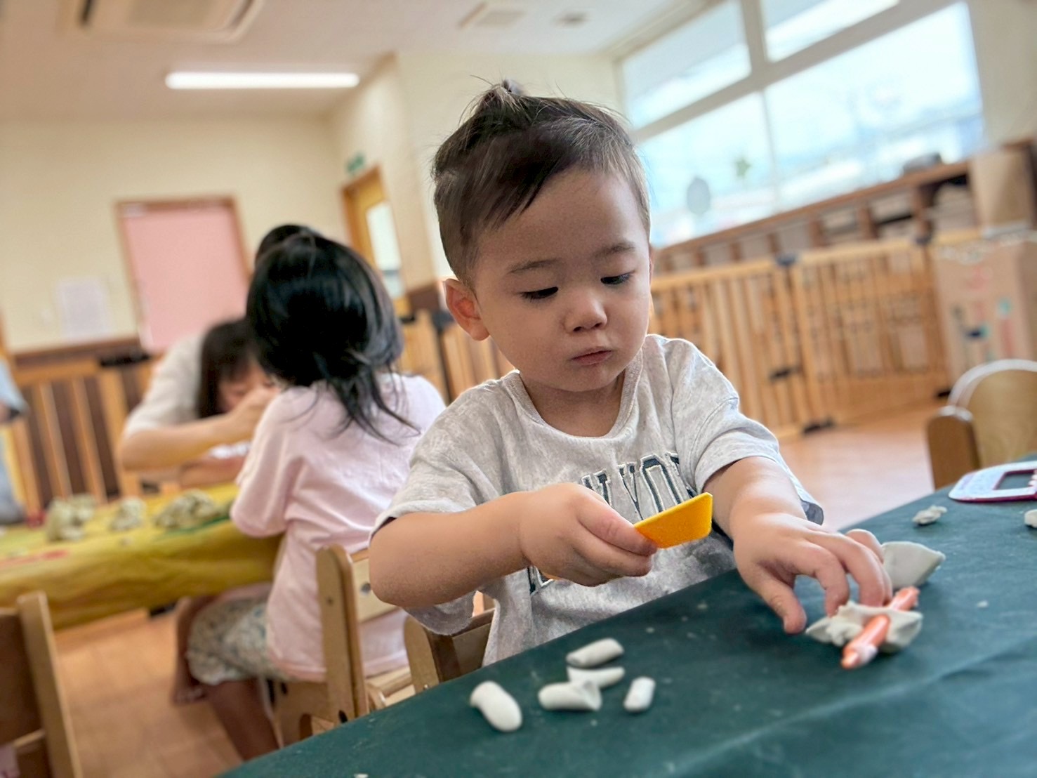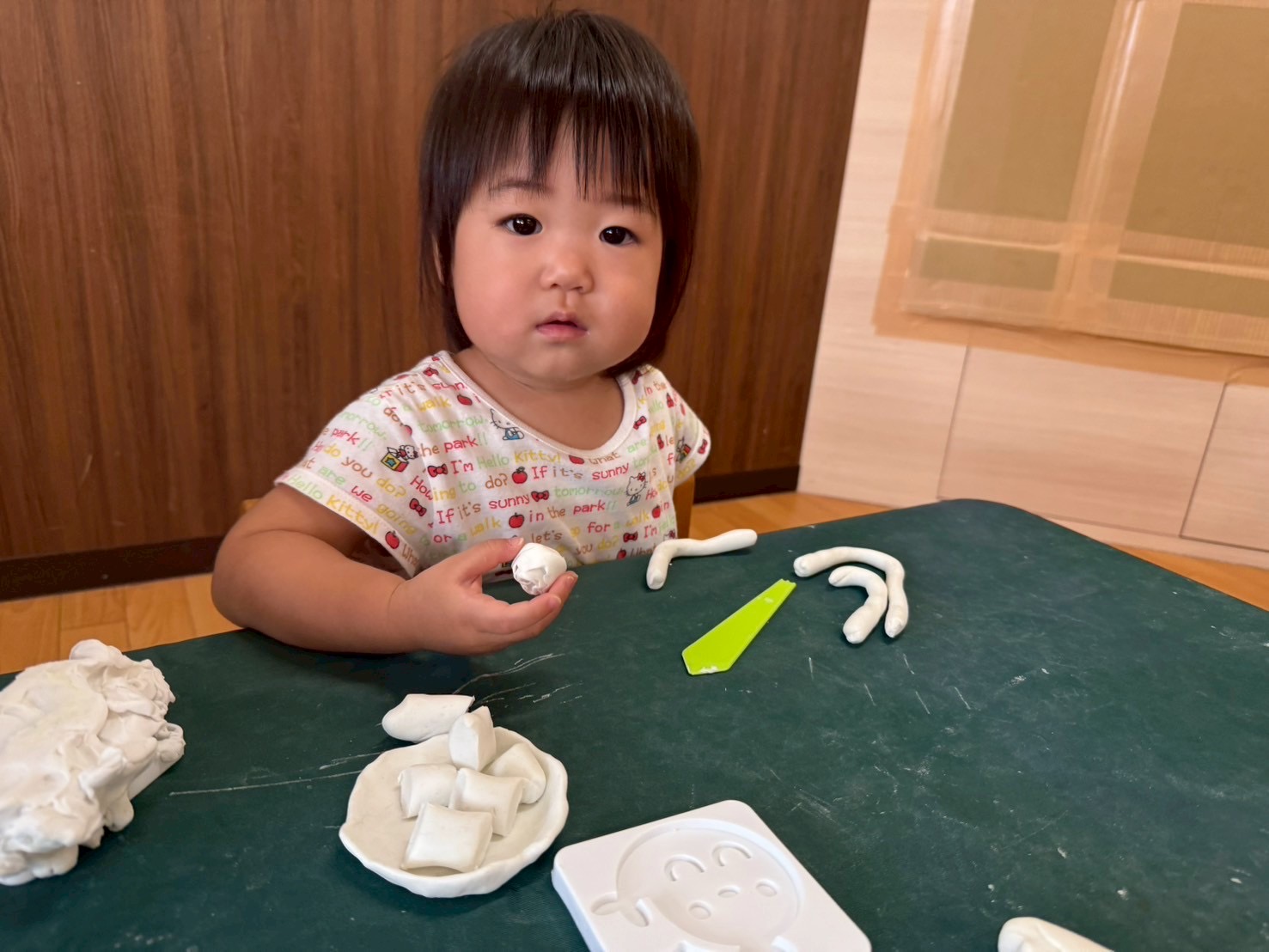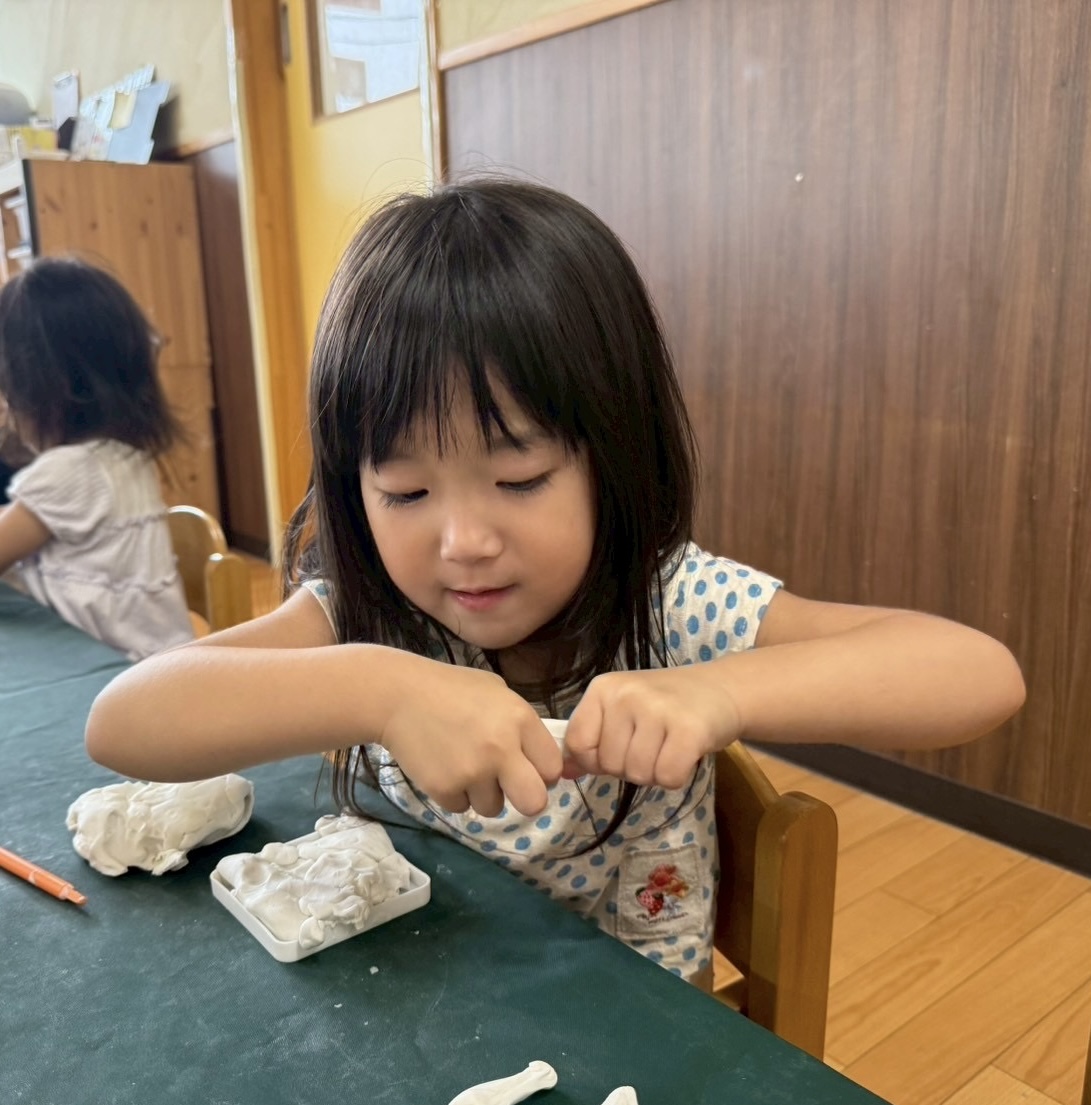 私たちはお花や食べ物の形を一生懸命作っていました✨